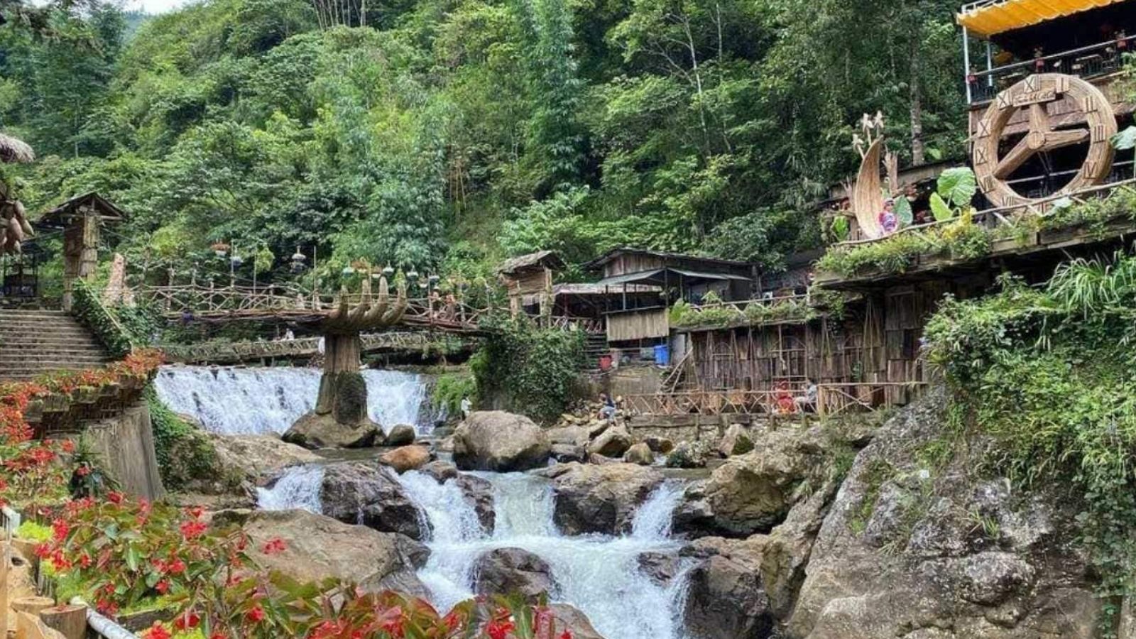 Bản Cát Cát – nổi tiếng với con đường hoa, guồng nước, váy áo dân tộc.