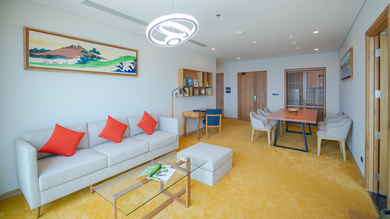 Tất cả các phòng tại khách sạn đều có tầm nhìn ra biển hoặc thành phố, cho dù bạn chọn hạng phòng Superior hay cao hơn. Các tiện ích đi kèm như xe đưa đón sân bay theo lịch trình khách sạn, nhà hàng Nhật Bản phục vụ ba bữa ăn trong ngày, hồ bơi vô cực trên tầng thượng kề cận “khu vườn trên mây”, phòng tập thể dục hiện đại và khu vực spa thư giãn với tầm nhìn ra biển, đều được thiết kế để mang đến cho du khách trải nghiệm tuyệt vời nhất.