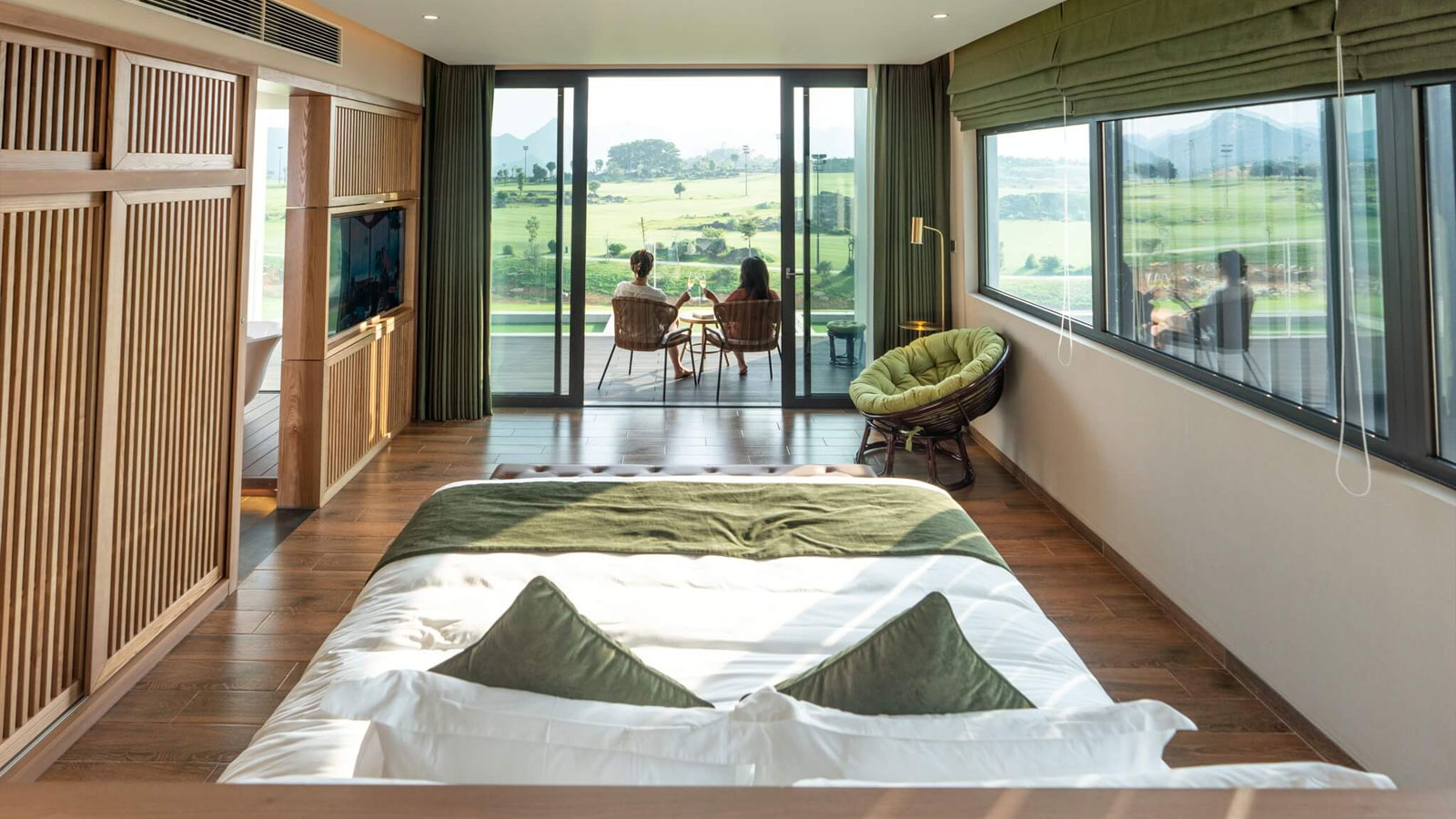 Khi lưu trú tại Wyndham Grand Vedana Ninh Bình Resort, bạn sẽ được trải nghiệm các tiện nghi đẳng cấp. Các phòng nghỉ rộng rãi và sang trọng, được trang bị máy lạnh, TV màn hình phẳng, minibar và kết nối Wi-Fi miễn phí. Các phòng còn có ban công riêng hoặc sân hiên, giúp bạn tận hưởng không khí trong lành và tầm nhìn tuyệt đẹp ra khu vườn xanh mát hoặc hồ bơi của resort.