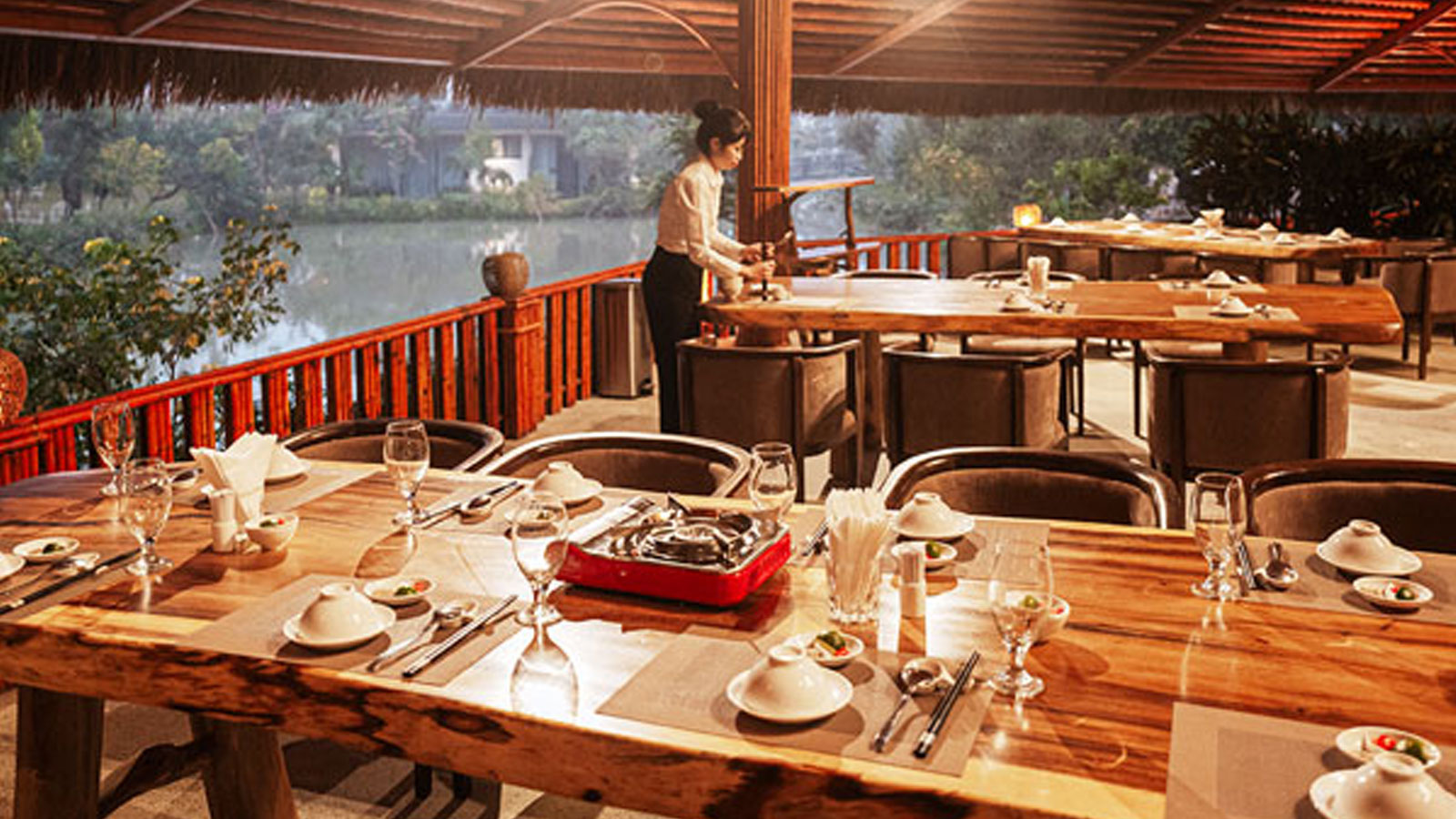 Tại nhà hàng của resort, bạn có thể thưởng thức các món ăn phong phú từ ẩm thực địa phương đến quốc tế. Nhà hàng phục vụ bữa sáng, trưa và tối với thực đơn đa dạng, được chế biến từ nguyên liệu tươi ngon nhất. Đây là nơi tuyệt vời để bạn trải nghiệm các món ăn đặc trưng của vùng đất Ninh Bình.