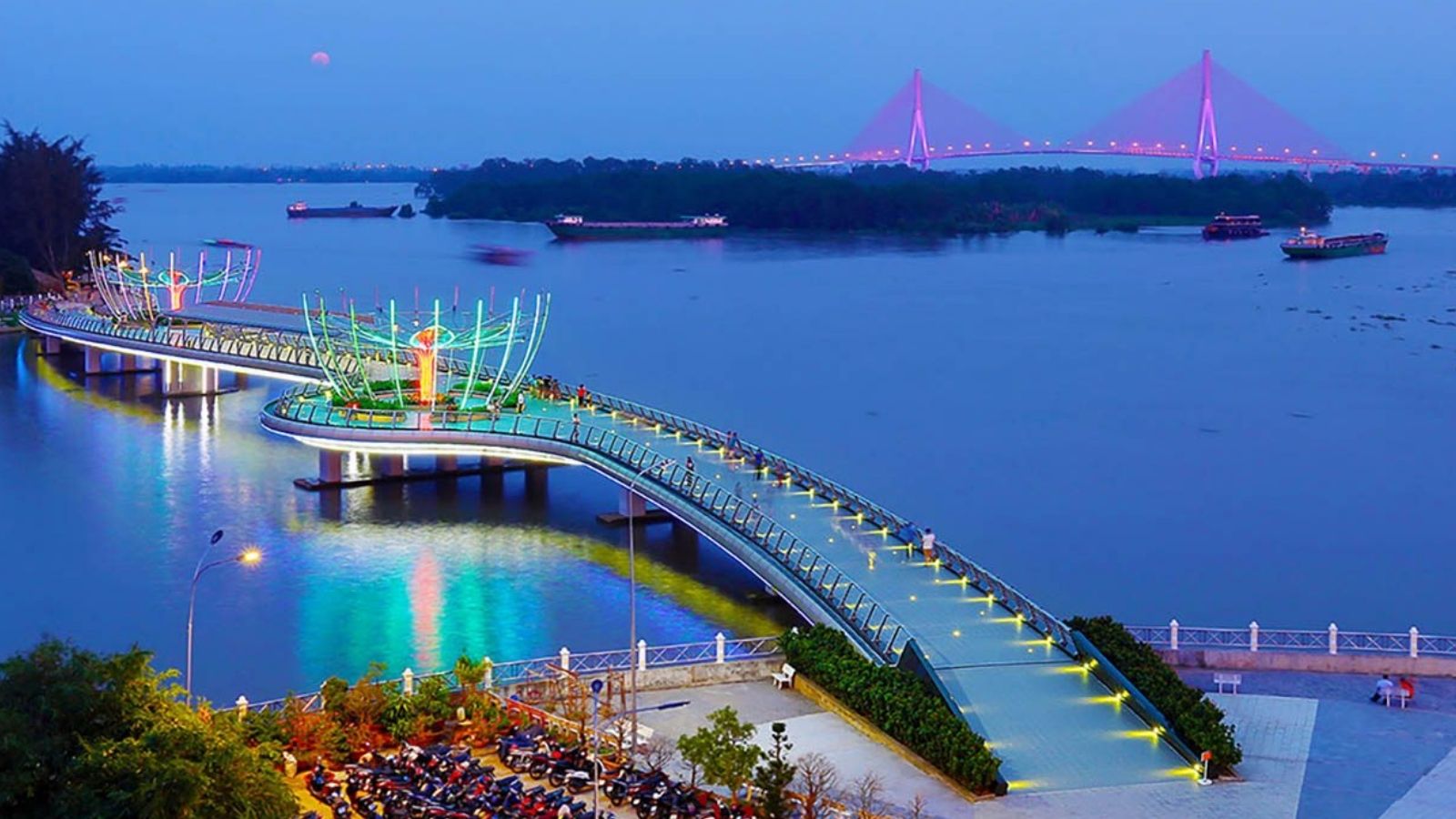 Biểu tượng của Cần Thơ, nổi bật với cầu đi bộ lung linh ánh đèn về đêm.