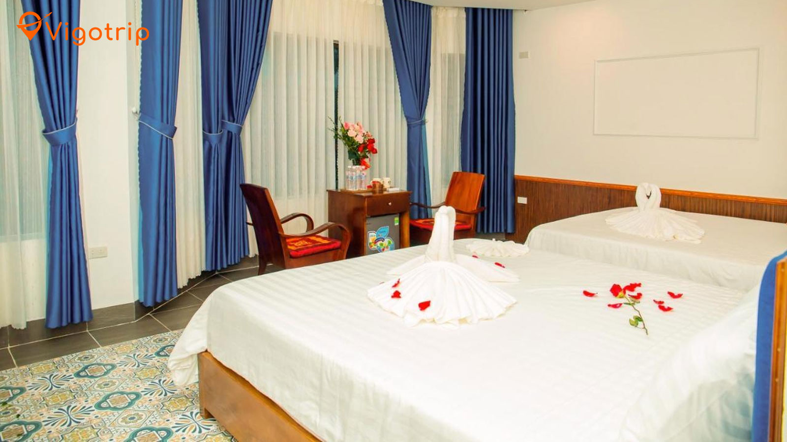 Một trong những điểm đặc biệt của khách sạn là không gian phòng được trang trí tinh tế, kết hợp hài hòa giữa phong cách hiện đại và những yếu tố truyền thống. Điều này giúp mang đến một không gian ấm cúng, dễ chịu cho du khách. Phòng nghỉ tại đây luôn được giữ gìn sạch sẽ, mang lại cảm giác thoải mái cho khách hàng.