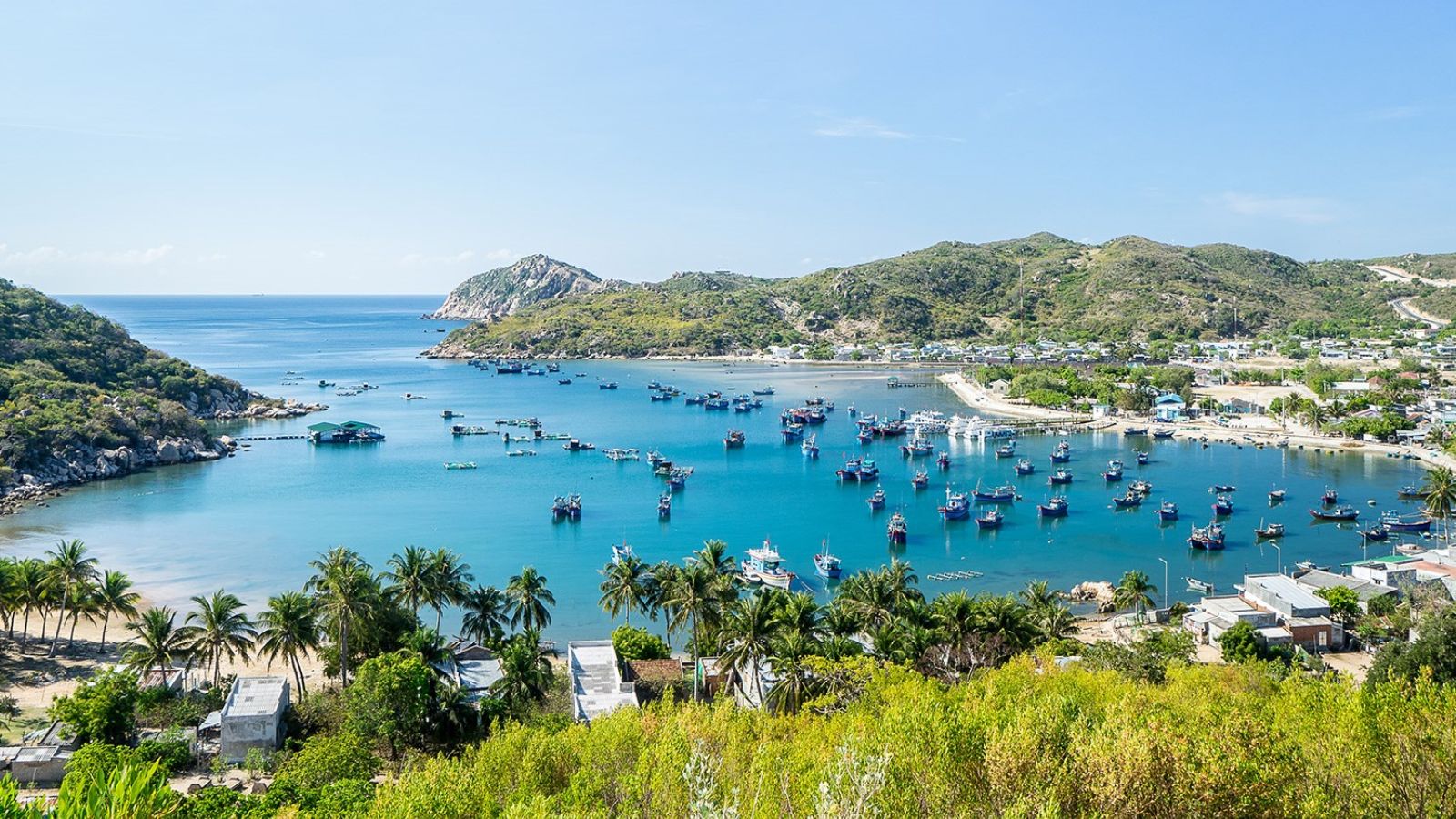 Vịnh Vĩnh Hy được xem là một trong những vịnh biển đẹp nhất Việt Nam với làn nước trong xanh, núi đá bao quanh và hệ sinh thái san hô đa dạng. Du khách có thể đi tàu đáy kính, lặn ngắm san hô hoặc thư giãn giữa không gian biển hoang sơ.