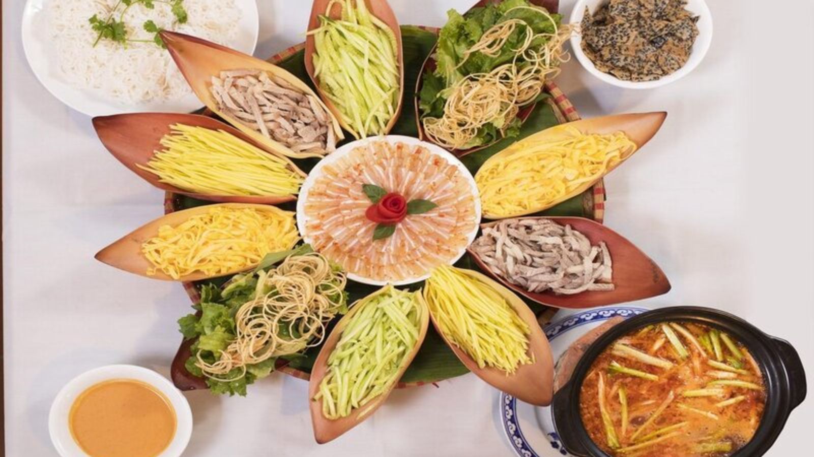 Một món ăn đặc trưng khi đi Phan Thiết tháng 12 không thể nào bỏ qua chính là lẩu thả. Các nguyên liệu làm nên món này rất đa dạng như cá đục, cá mai, hoa chuối, xoài, thịt lợn, trứng chiên,… Khi ăn, người ta cho bún, cùng các nguyên liệu trên vào tô và cuối cùng là trộn nước dùng lên. Hương vị chua thanh, ngọt nhẹ hòa quyện khiến ai cũng tấm tắc khen.