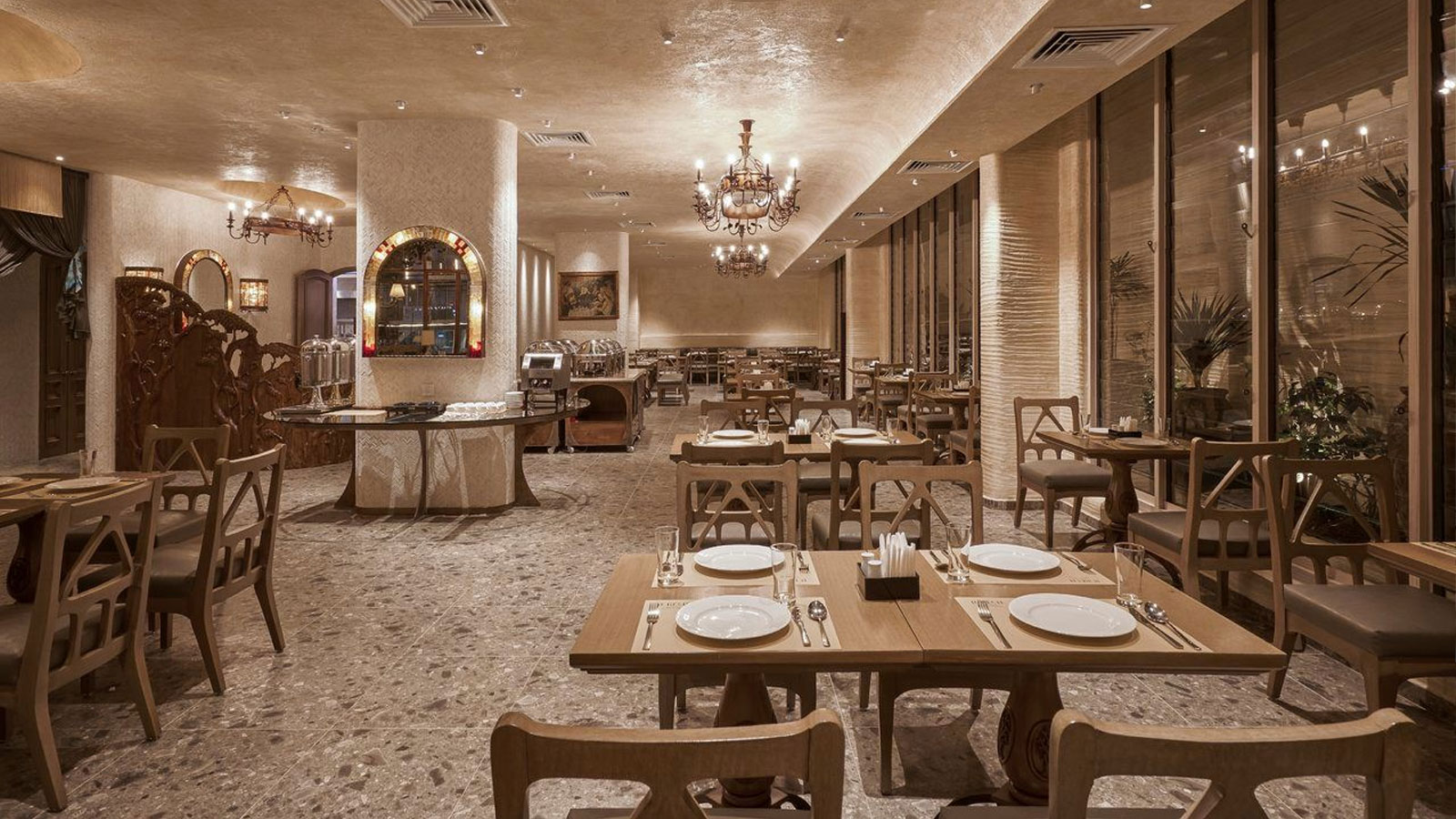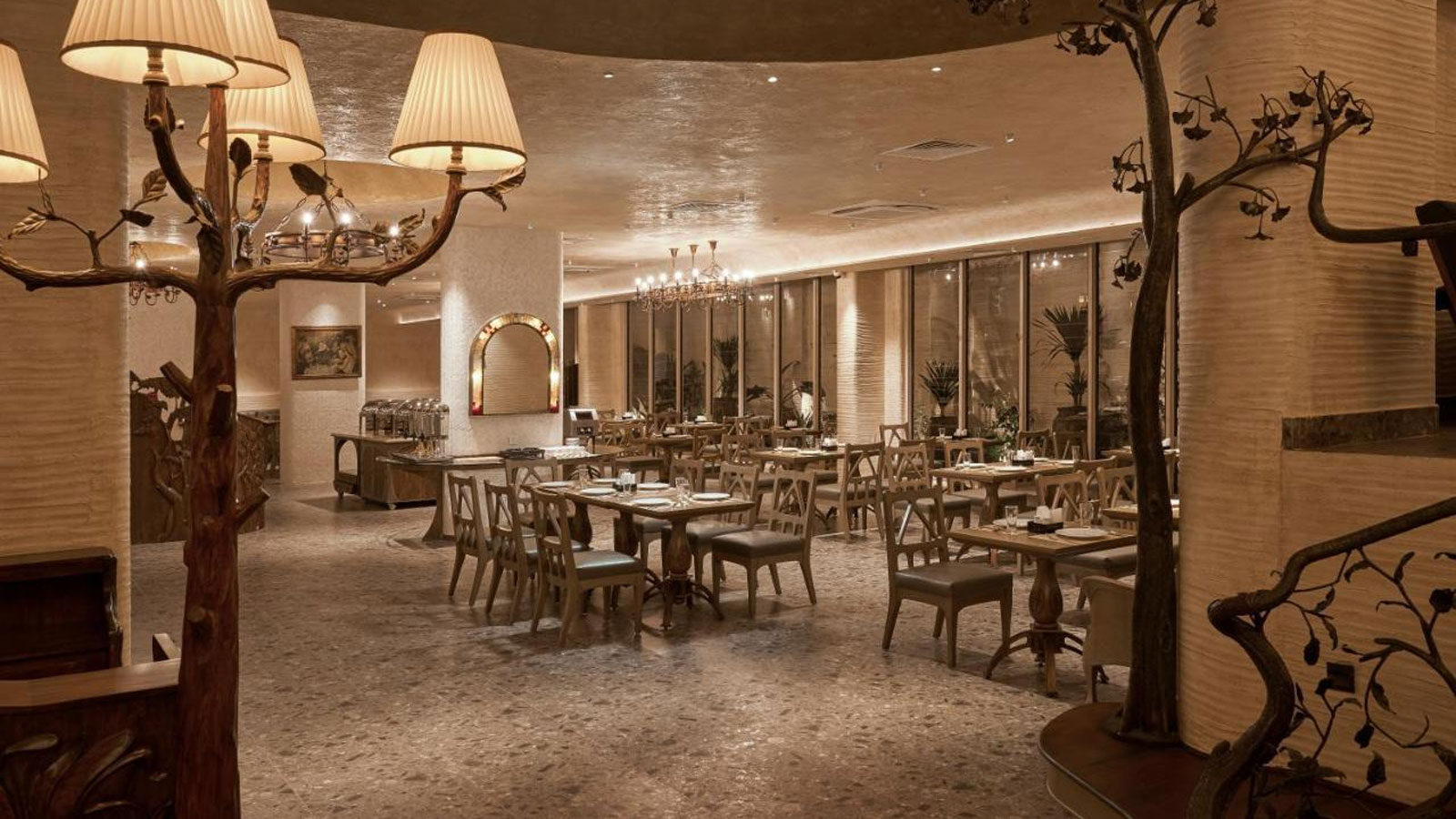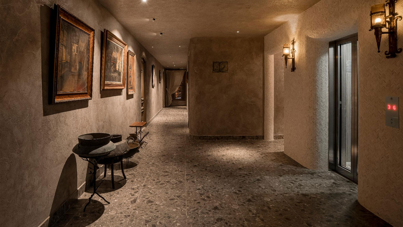 Điểm đặc biệt là những bức tranh nghệ thuật theo chủ đề được treo trên bức tường xám dọc hành lang, mang đến không khí châu Âu. Mặc dù lối trang trí này không mới, nhưng kết hợp với phong cách cổ điển của khách sạn tạo cảm giác như một bảo tàng thu nhỏ.