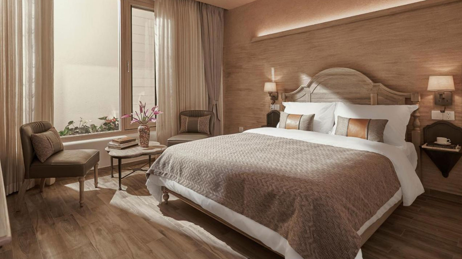 Hơn thế nữa, mỗi góc nhỏ trong khách sạn Le Récit Boutique Hôtel Đà Lạt đều được chăm sóc cẩn thận với những món đồ trang trí như đèn bàn và ghế gỗ. Tất cả những chi tiết này góp phần tạo nên một không gian hài hòa, đồng nhất và vô cùng thú vị.