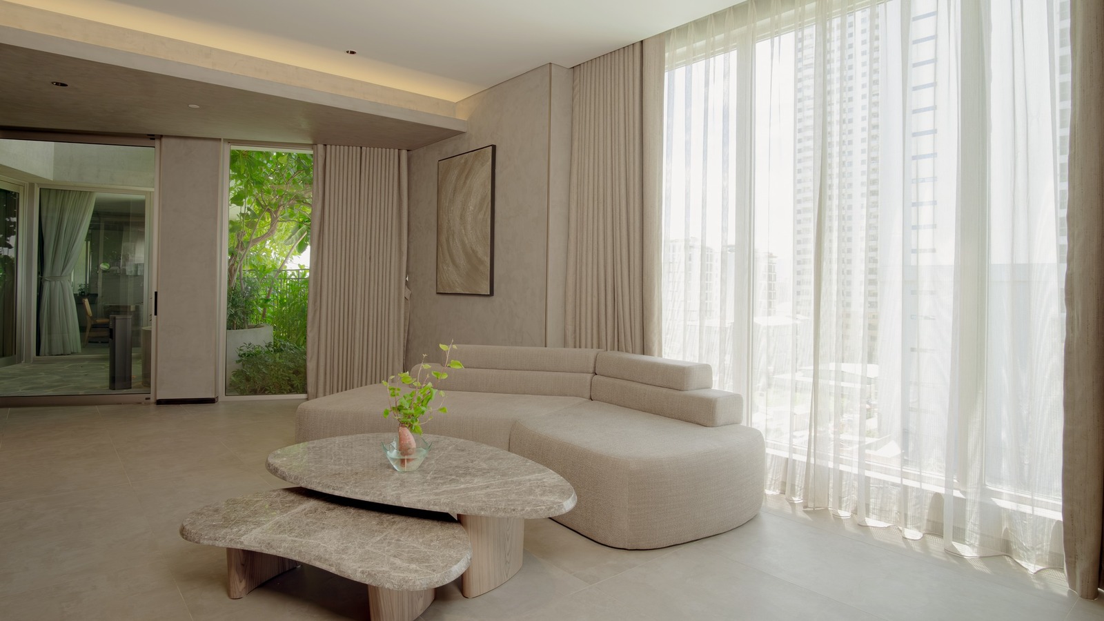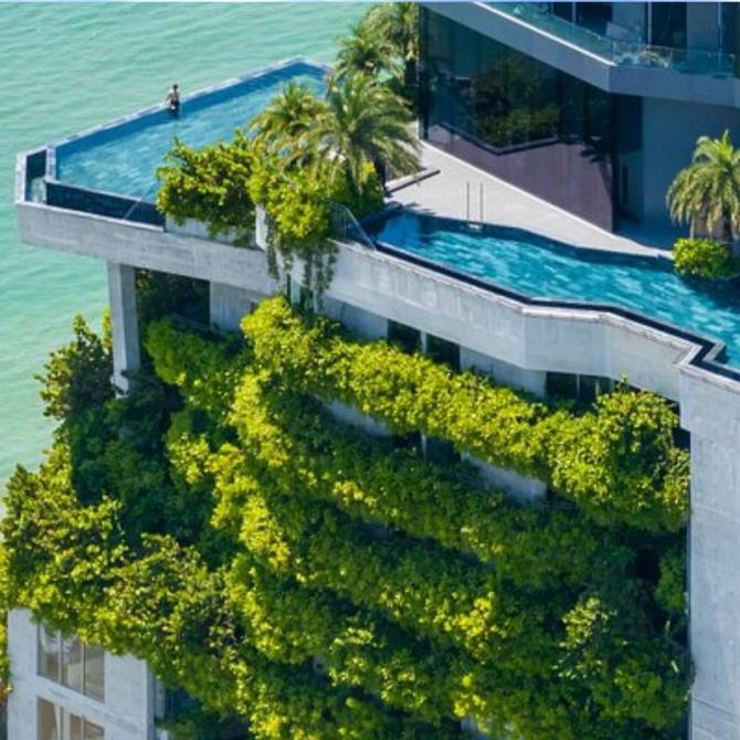 Có một "Khu Vườn" được tích hợp bên từng căn phòng, tạo nên sự kết nối thư thái và gần gũi với thiên nhiên. Đây thực sự là một ý tưởng tuyệt vời cho những tâm hồn yêu thiên nhiên và khao khát tận hưởng không gian yên tĩnh ngay tại thành phố biển sôi động.