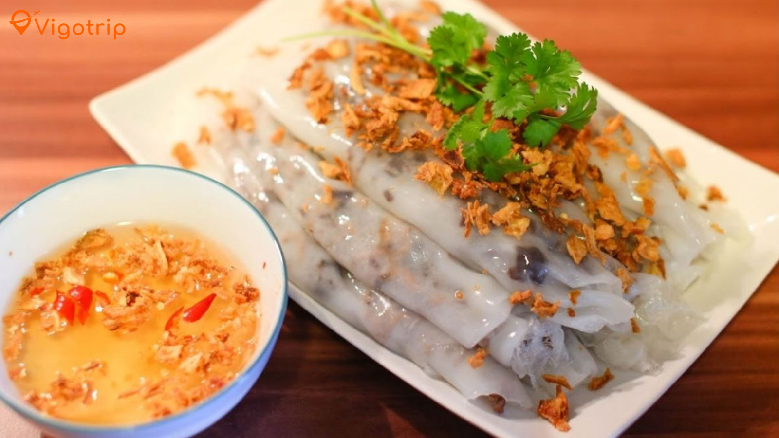 Bánh cuốn Tam Đảo nổi bật với việc ăn kèm thịt lợn rừng nướng, rau sống và nước chấm. Vào buổi sáng se lạnh tháng 11, bánh cuốn sẽ là món ăn lý tưởng để lấp đầy bụng trước khi khám phá cảnh đẹp.