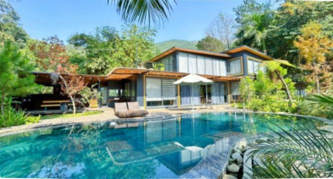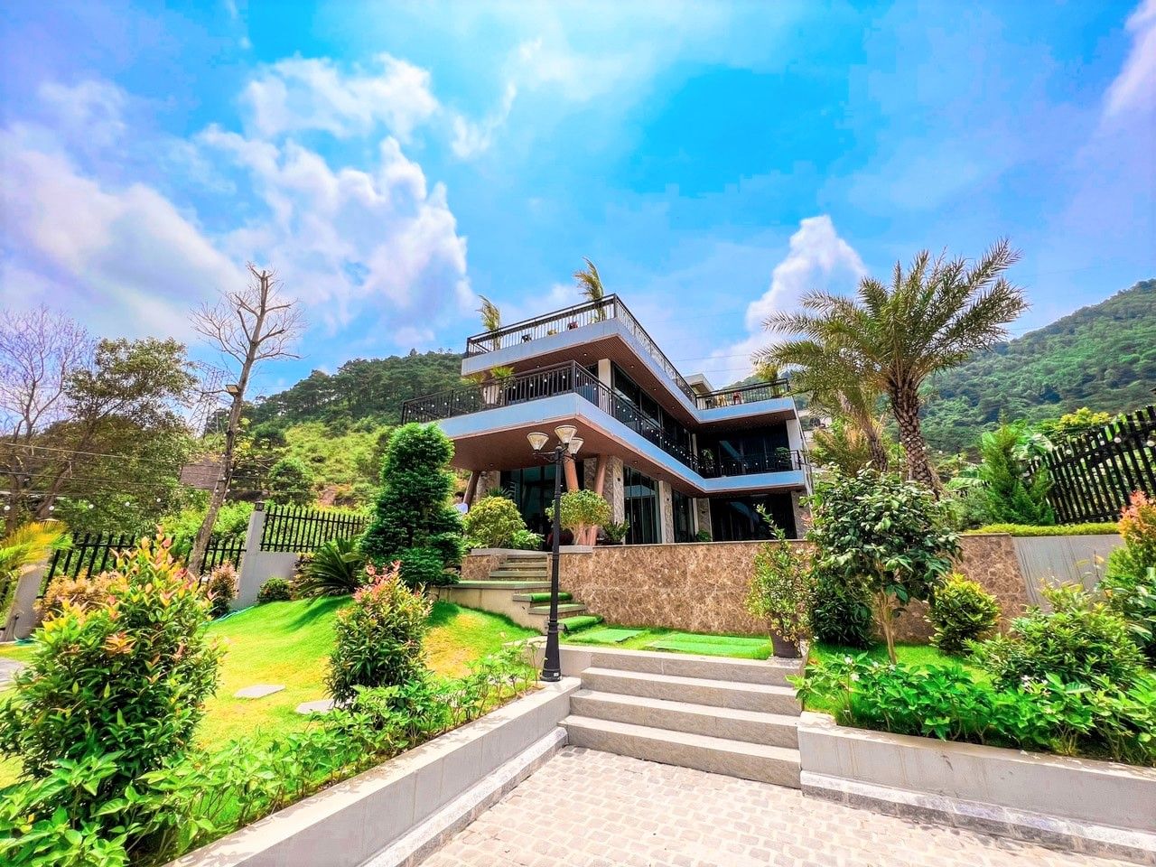 View núi xanh biếc, villa hiện đại với bể sục jacuzzi và sân vườn rộng – top đánh giá cao trên Vigotrip nhờ sự riêng tư.