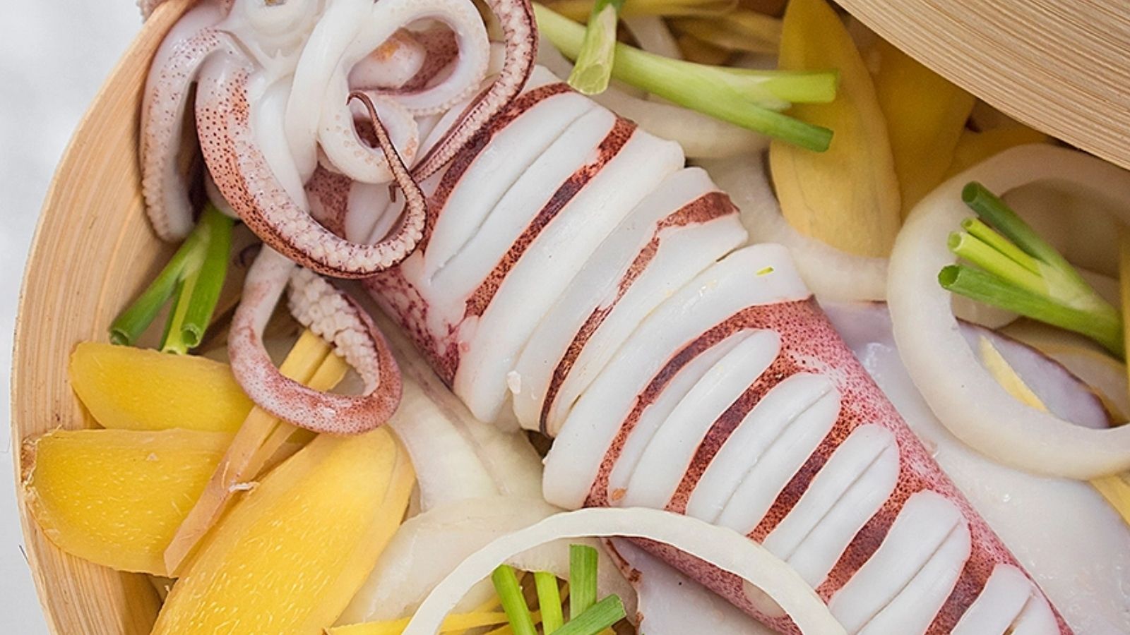 Mực tươi hấp gừng – giữ nguyên vị ngọt của biển.