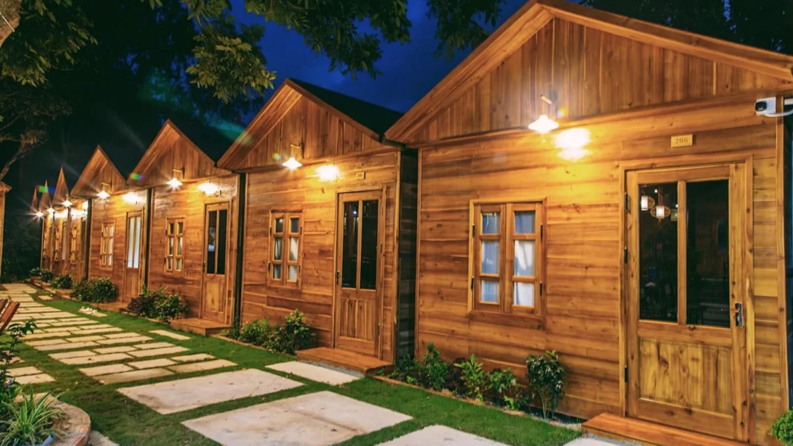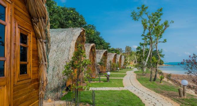 Thanh Bình Cô Tô gồm 13 căn nhà gỗ thiết kế riêng tư, thích hợp cho gia đình hoặc nhóm bạn. Không gian rộng rãi, nhiều cây xanh và tiện nghi đầy đủ (điều hòa, tivi, tủ lạnh…) mang đến kỳ nghỉ thoải mái.