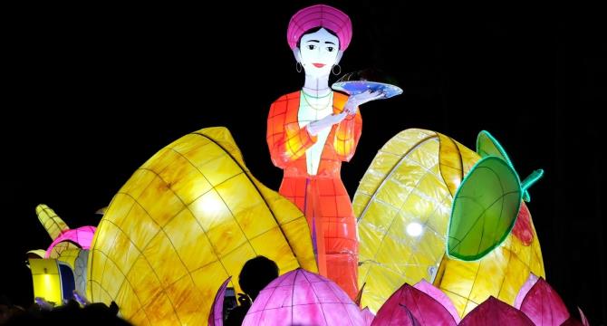 Hàng trăm mô hình đèn lồng khổng lồ, tái hiện nhân vật cổ tích, danh lam thắng cảnh và nét văn hóa đặc sắc.