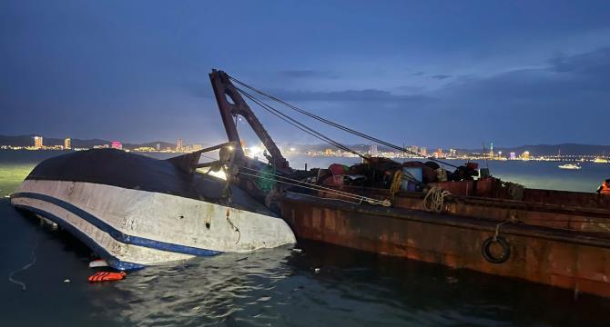 Tàu bị trục vớt và lai dắt về cảng Cái Lân, sẵn sàng cho công tác khám nghiệm để làm rõ nguyên nhân vụ việc.