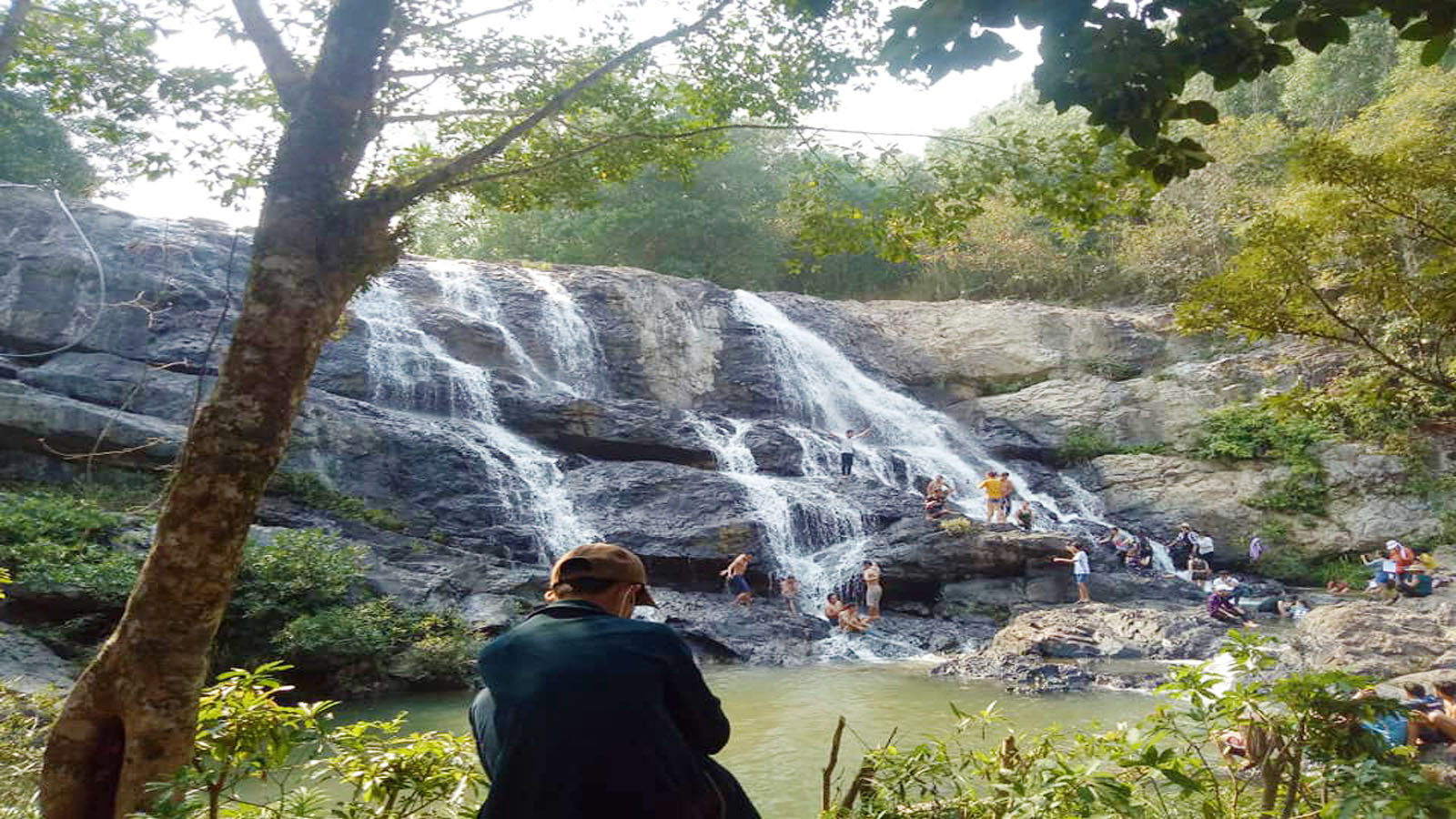 Bên cạnh một thác nước mang vẻ đẹp huyền bí, mờ ảo, trong khu vực này còn có một chiếc hang đá với độ rộng khoảng chừng 20m, sâu khoảng 15m và có độ cao 2m. Trong lòng hang là một luồng không khí mát lạnh mà bất kể người du khách nào cũng cảm thấy sảng khoái và thích thú. Không khí nơi đây tạo cho ta cảm giác như đứng giữa một căn phòng có bộ máy điều hòa đền từ tự nhiên, không quá bí bách và tù túng.