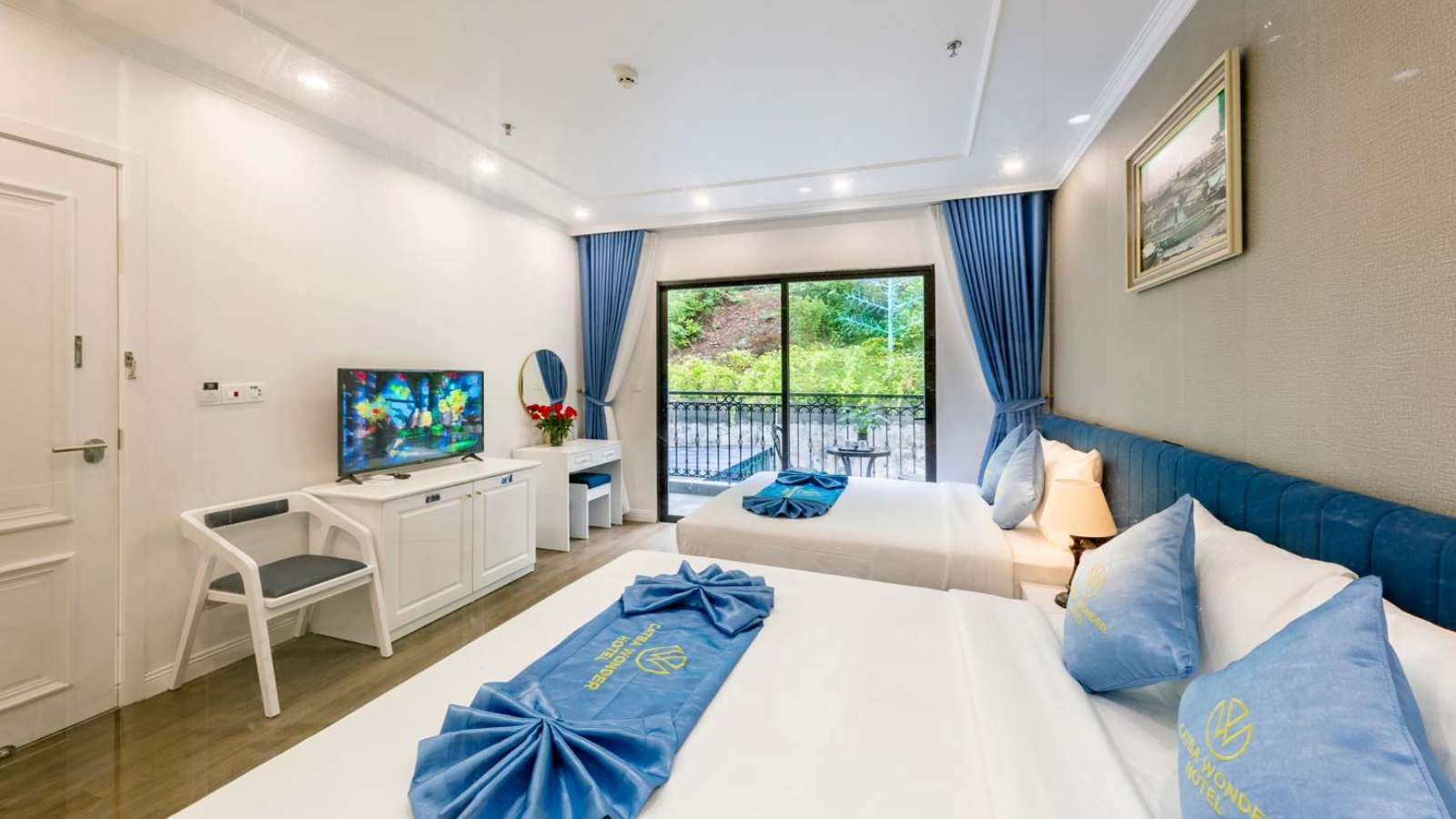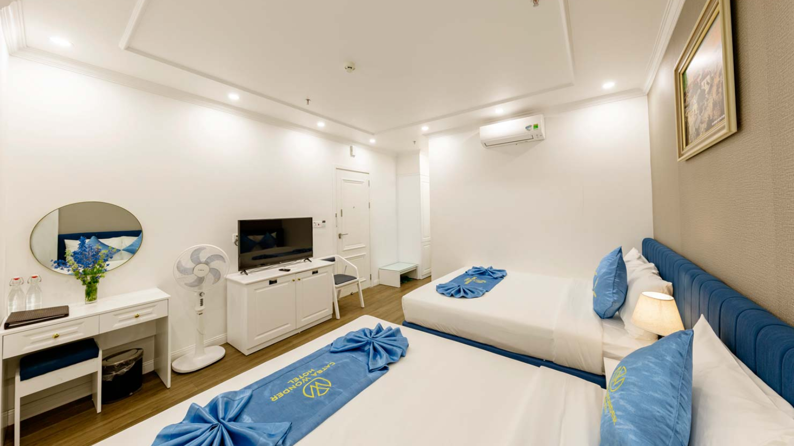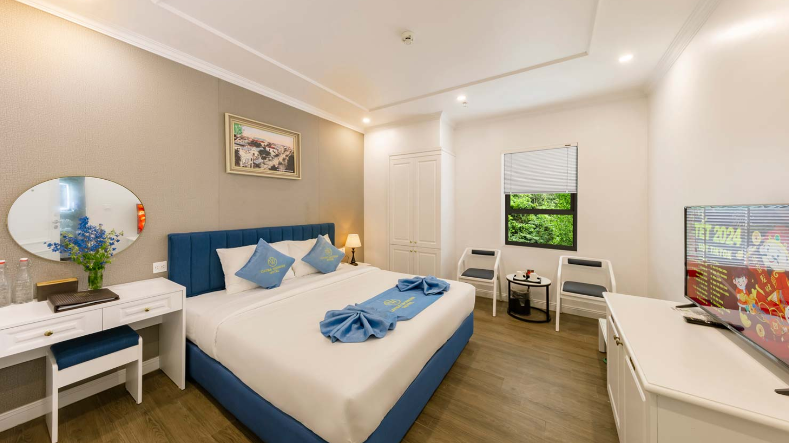 Diện tích từ 23 – 30m², đầy đủ tiện nghi: điều hòa, TV, minibar, két an toàn, bàn làm việc, phòng tắm riêng.