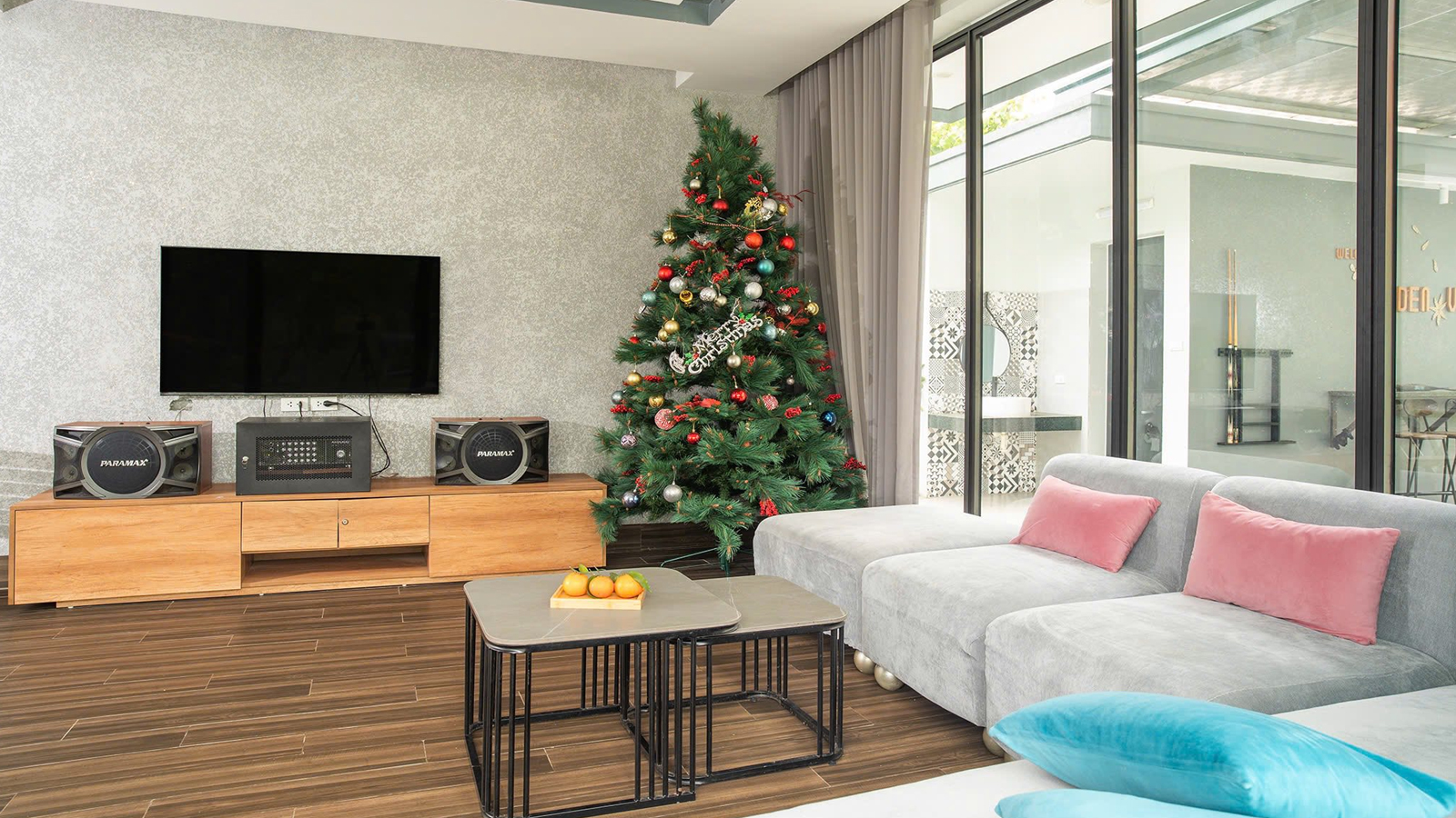 - Phòng khách rộng có dàn Karaoke, Wifi, Tivi.