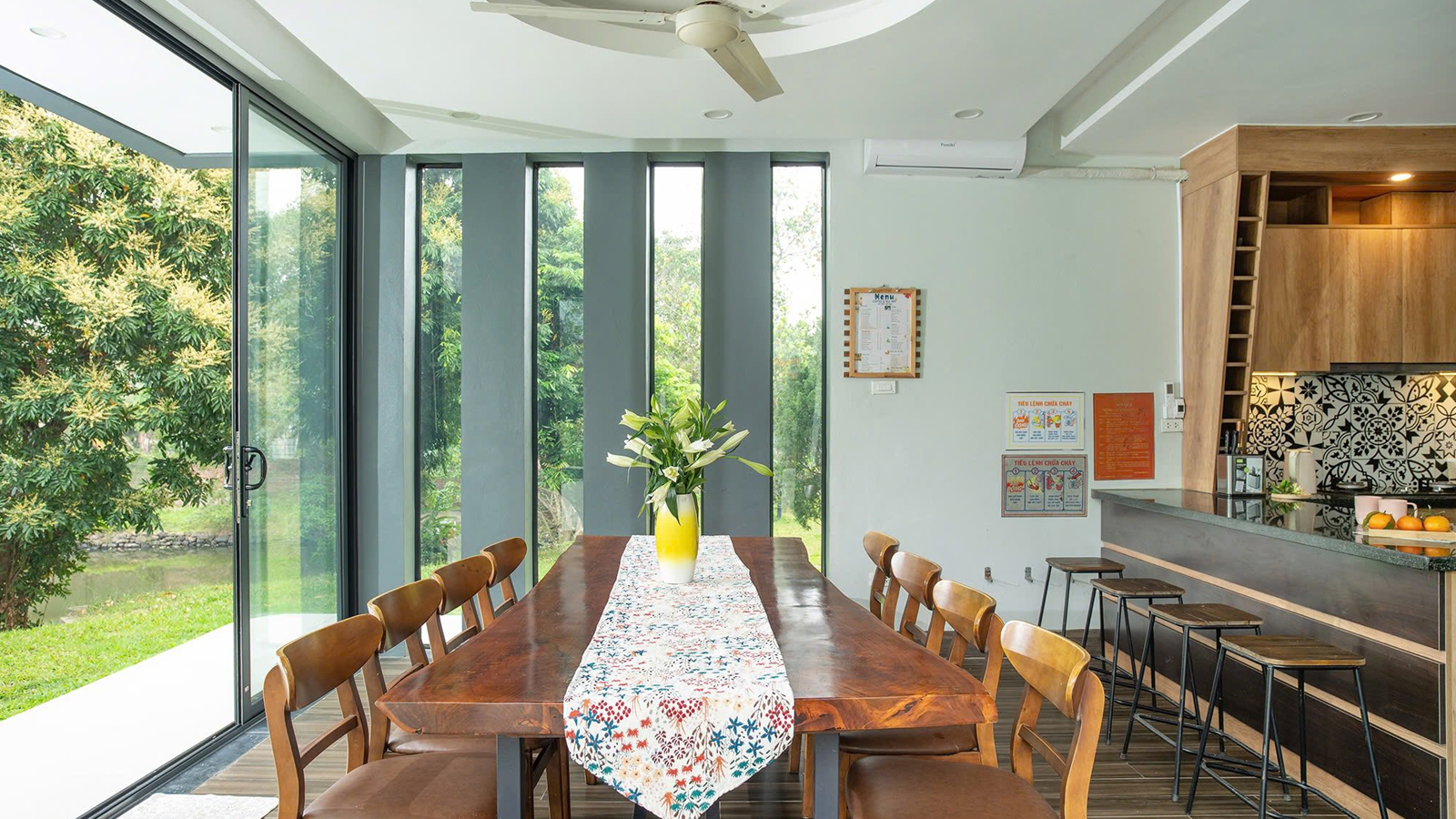 - Nhà bếp bát đĩa setup đầy đủ theo tiêu chuẩn, có thể ăn trong nhà hoặc ngoài trời