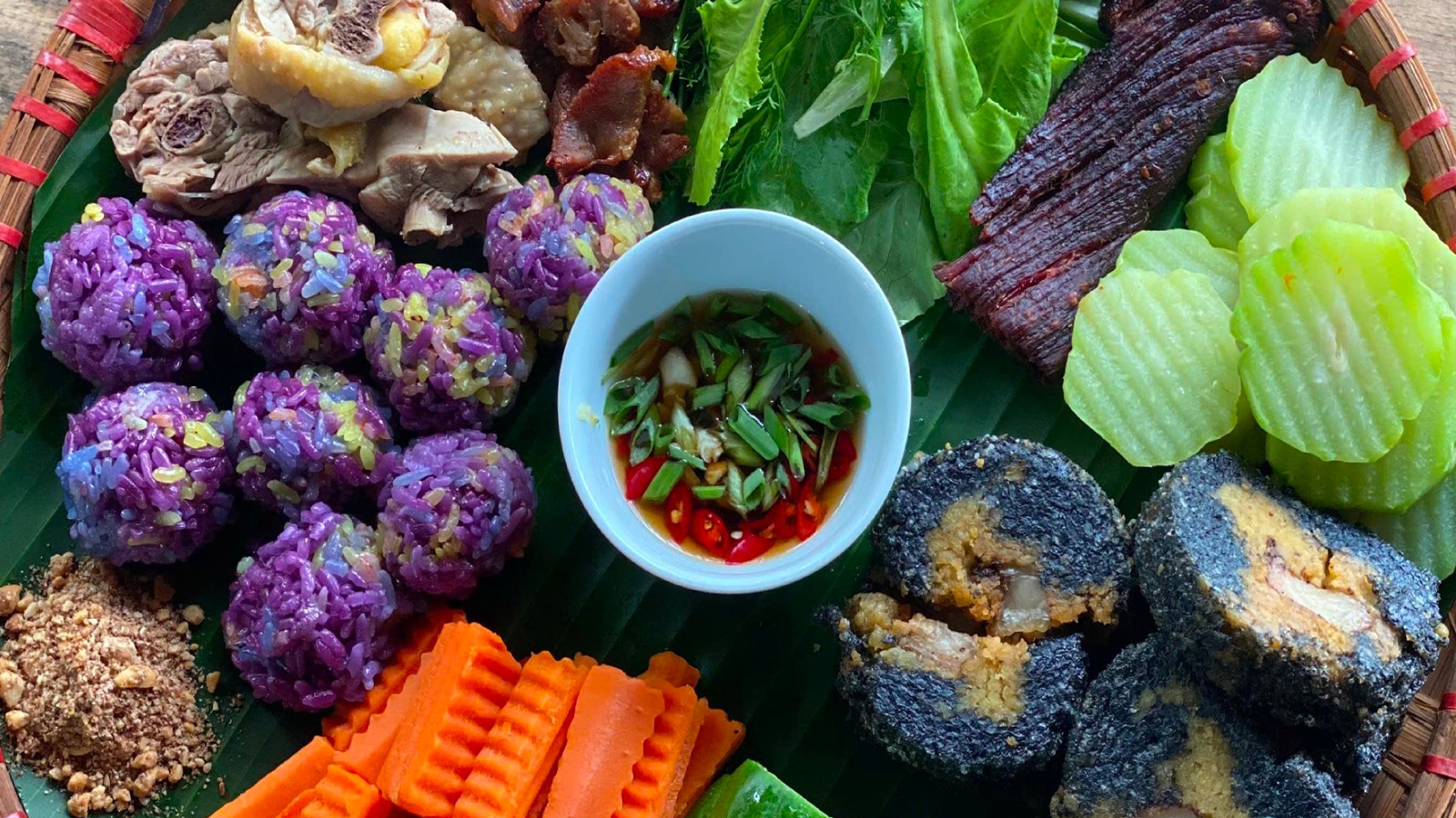 Thưởng thức đặc sản Tây Bắc – gà đen, lợn cắp nách, xôi ngũ sắc, bánh chưng đen và các loại rau rừng tươi ngon.