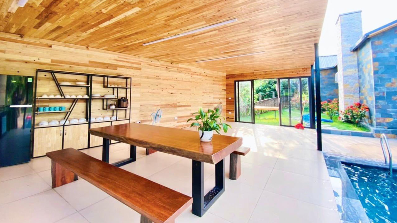 - Khu nhà ăn riêng biệt view bể bơi với đầy đủ tiện ích đồ dùng bếp