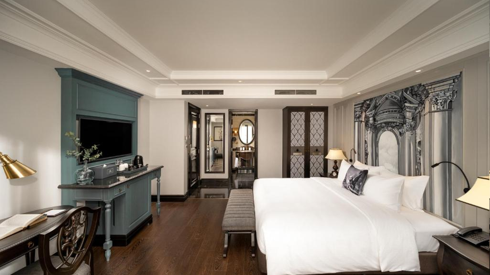 64 phòng nghỉ rộng rãi, trang bị tiện nghi cao cấp (TV thông minh, minibar, bàn làm việc, bồn tắm sang trọng...).
