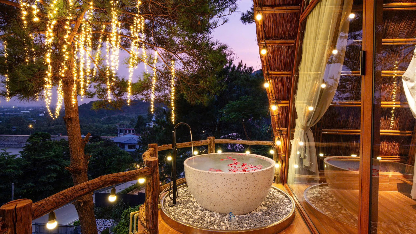 - Bồn tắm đá lộ thiên check in cháy máy với view cực mê.