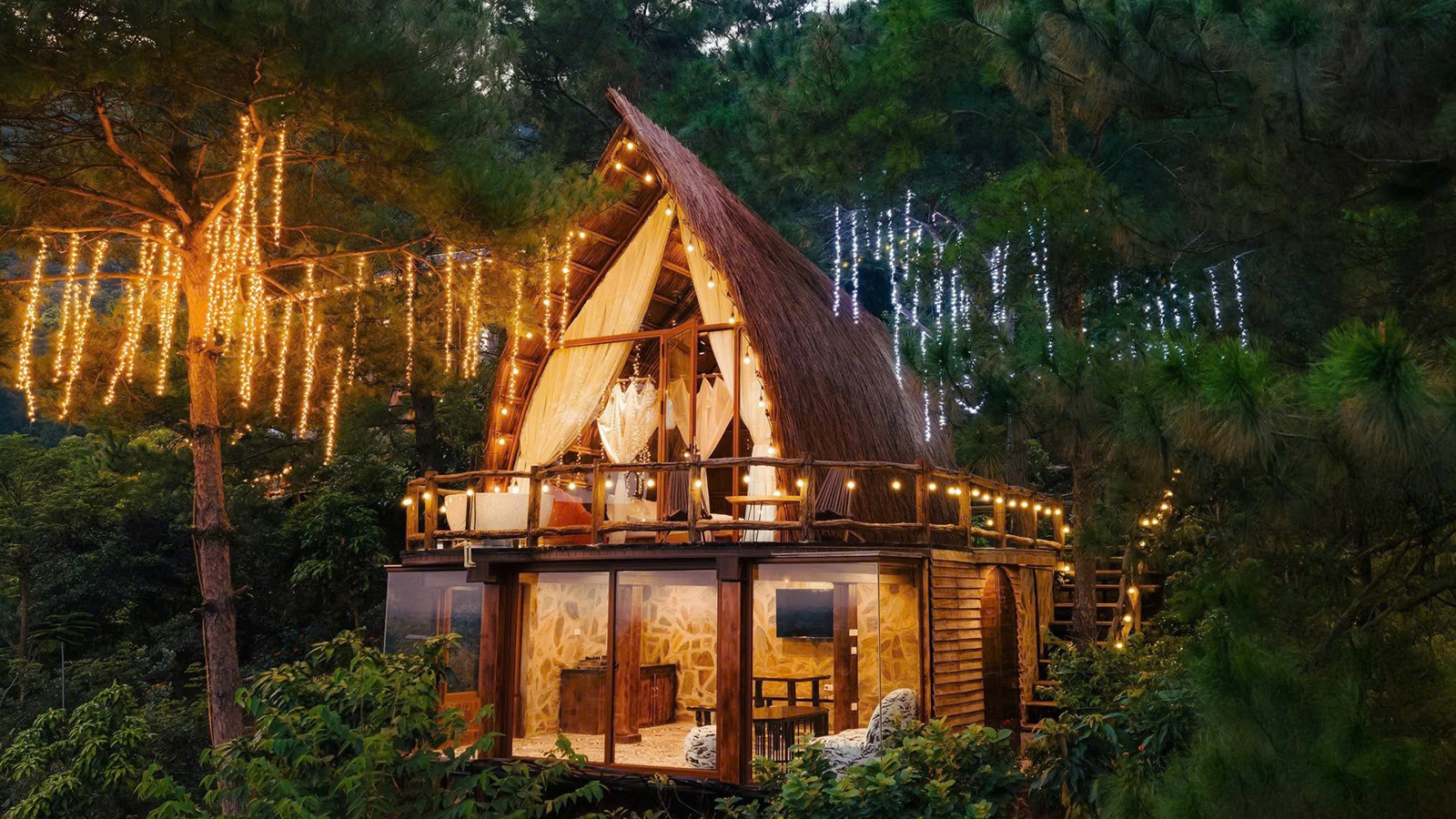 -Tầng 2 là phòng ngủ riêng tư vệ sinh khép kín: 1 Giường (1m8 x 2m), thiết kế cực lãng mạn, bay bổng. Có thể kê thêm 1 đệm phụ. Đầy đủ: điều hoà, máy sấy, quạt