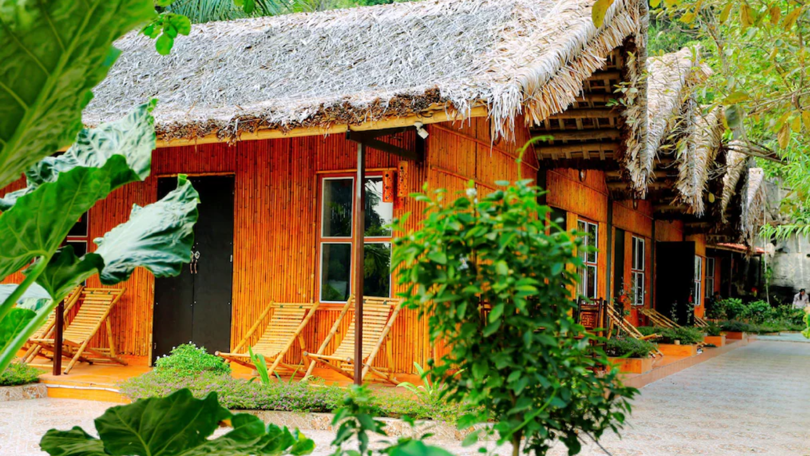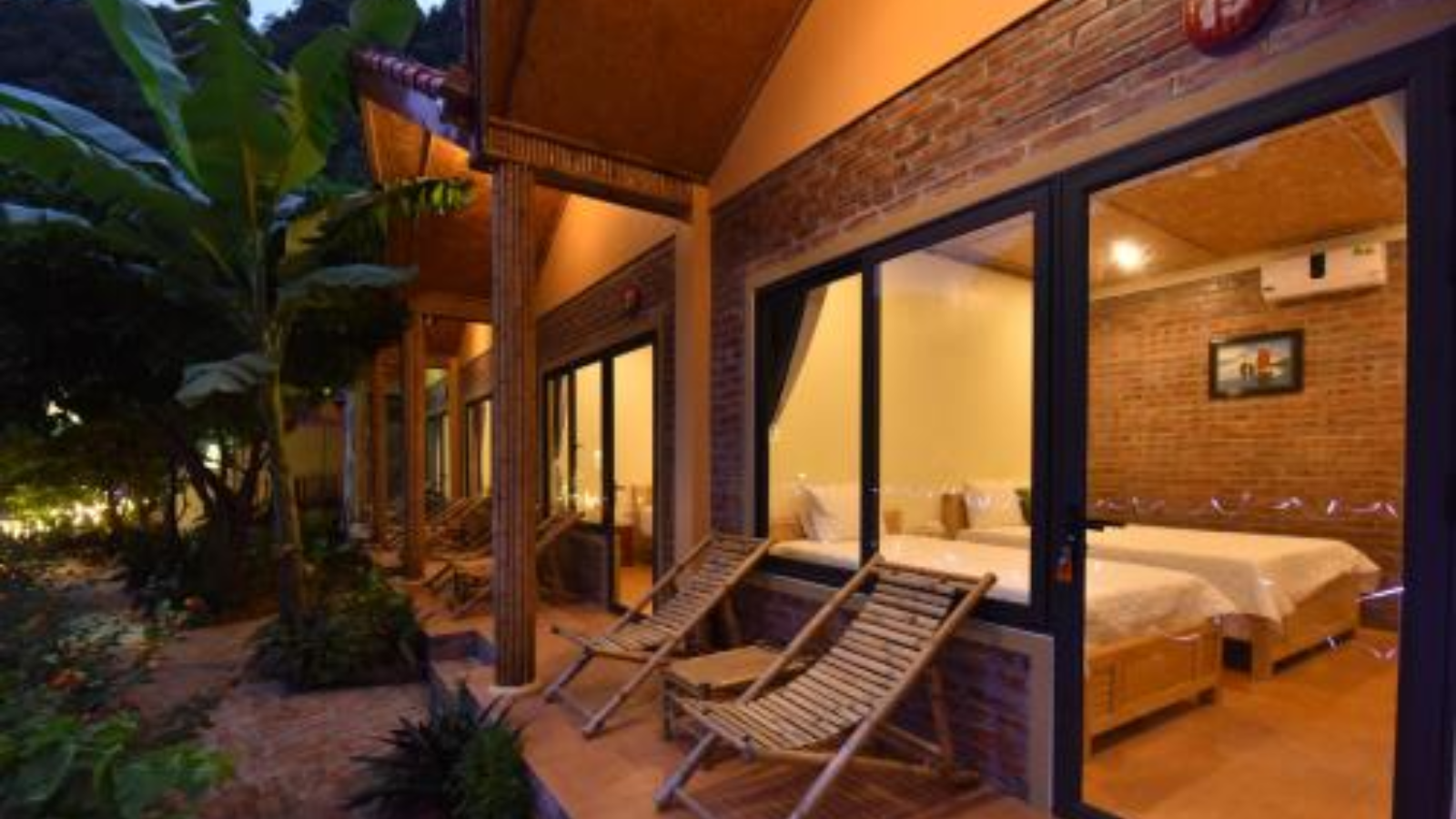 Các bungalow được xây dựng bằng gỗ và tre, có mái lá truyền thống, nhưng vẫn trang bị đầy đủ tiện nghi như máy lạnh, phòng tắm riêng, wifi miễn phí. Phòng nghỉ có ban công hoặc cửa sổ lớn để ngắm cảnh núi đá vôi hùng vĩ và dòng sông Ngô Đồng lững lờ trôi.