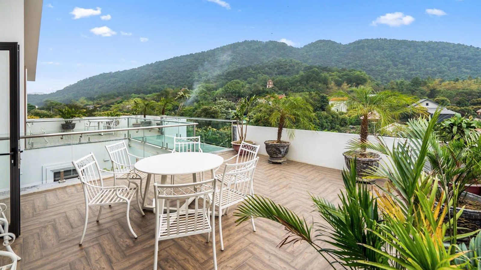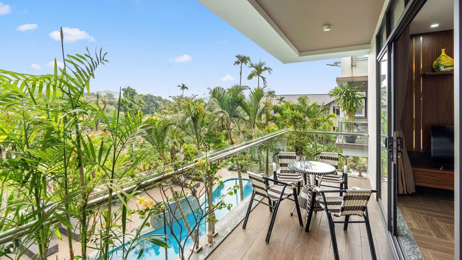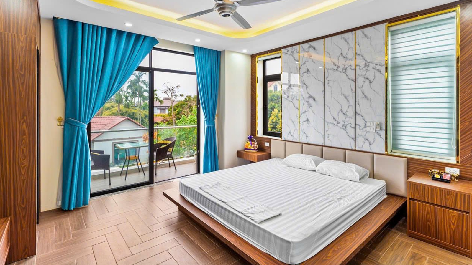 - Tầng 2 gồm 4 phòng ngủ, mỗi phòng được thiết kế với 1 giường đôi khép kín, có ban công riêng, và 1 ban công rộng phía bên ngoài