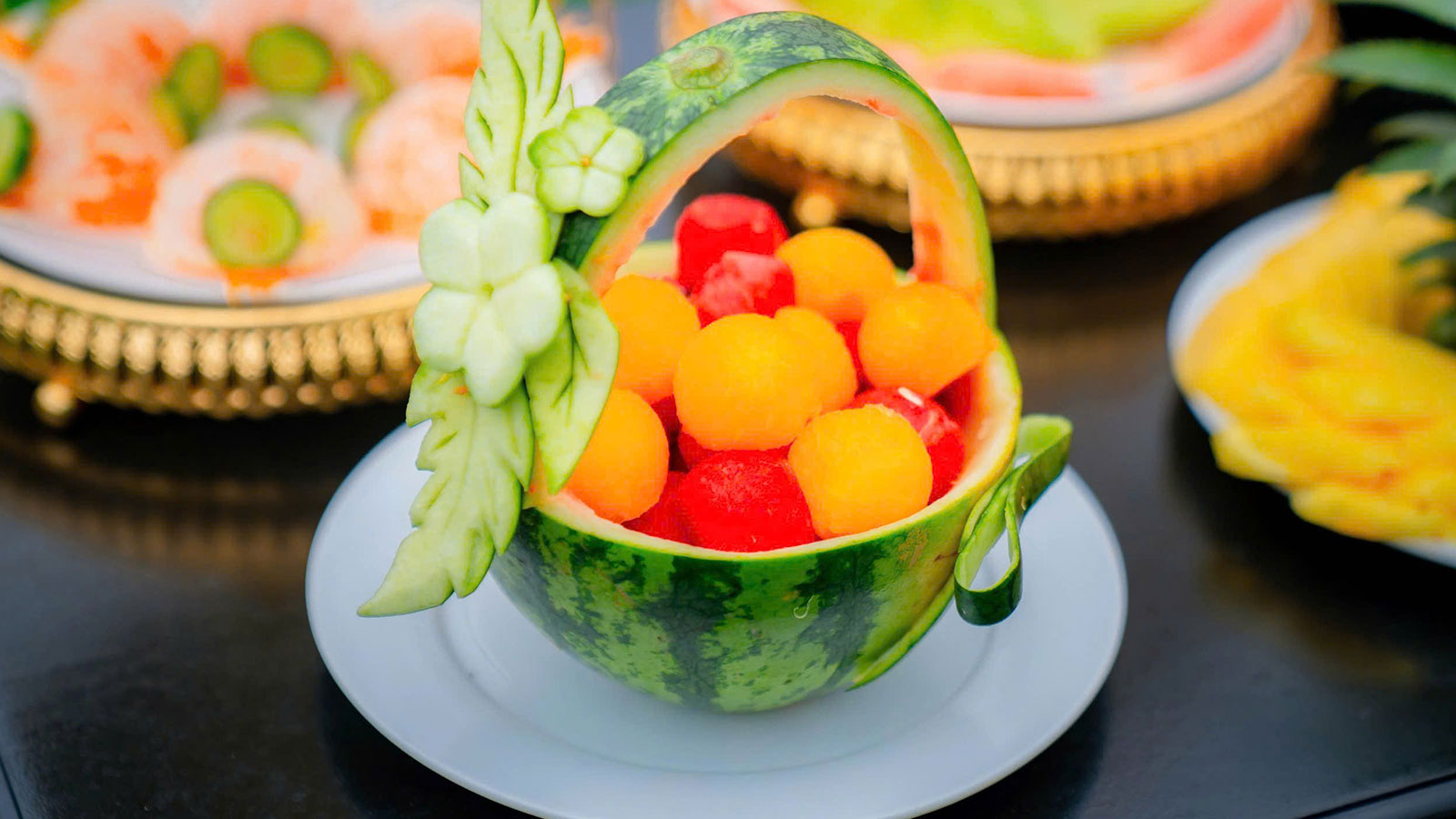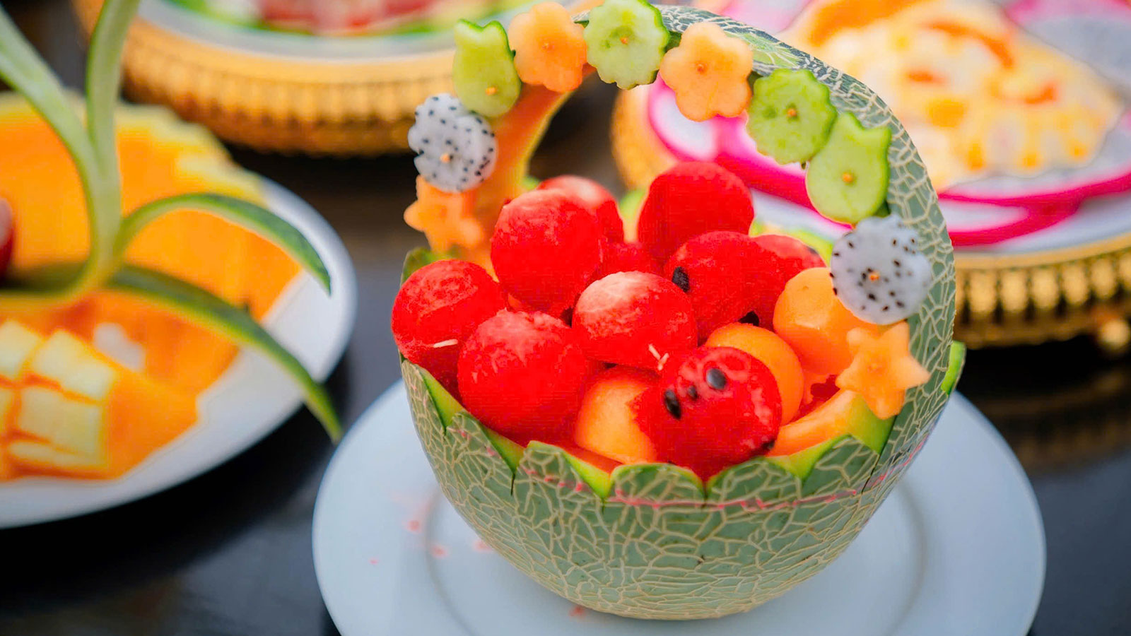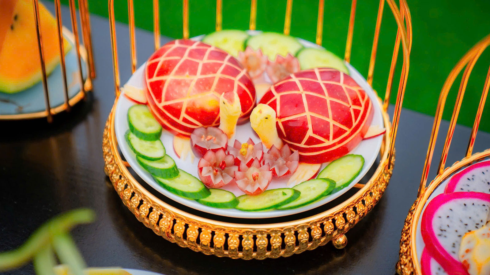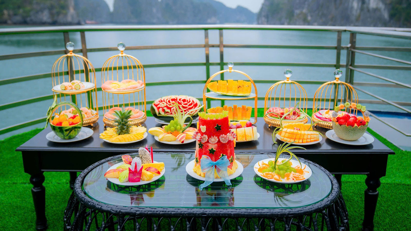 Hãy cùng thưởng thức bữa tiệc nhẹ cùng với hoa quả , bánh , trà mát lạnh và ngắm khoảnh khắc đẹp nhất trong ngày của Vịnh Lan Hạ.