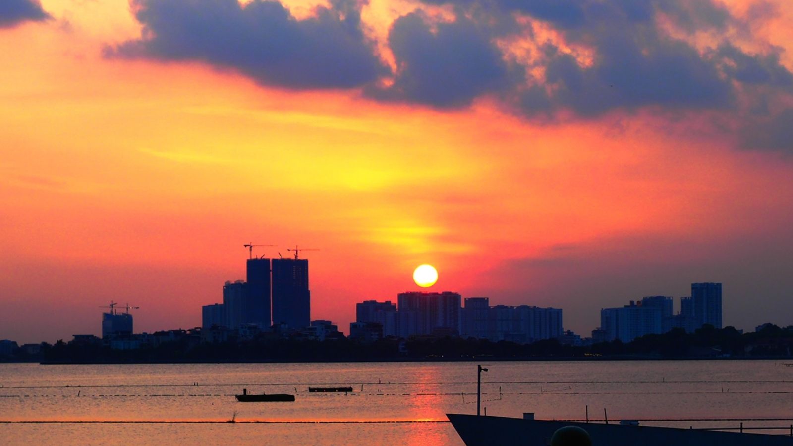 Di chuyển khoảng 10 phút ra cầu, ngắm mặt trời buông xuống, gió sông mát rượi.