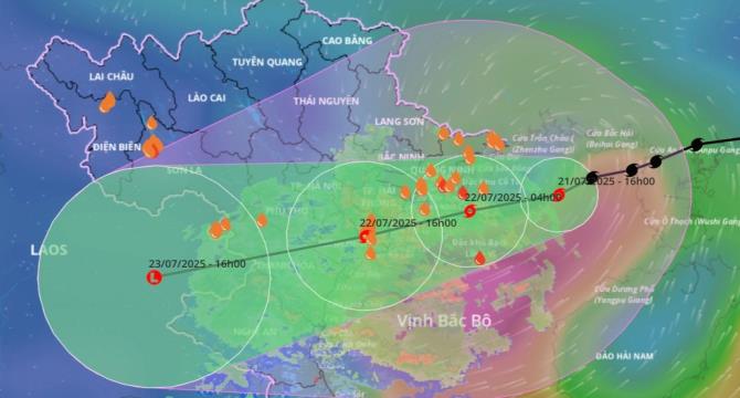 Dự kiến: Bão sẽ chính thức đổ bộ từ Hải Phòng đến Thanh Hóa trong khoảng thời gian 9h–15h ngày 22/7, sau đó suy yếu nhưng vẫn gây mưa to, gió mạnh khu vực Bắc Bộ và Bắc Trung Bộ