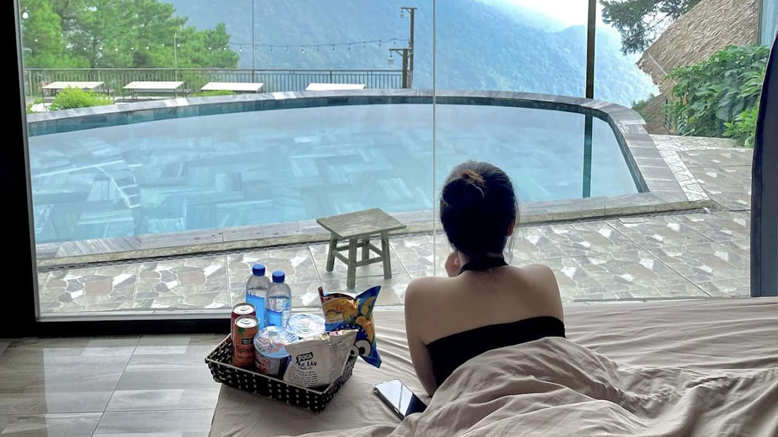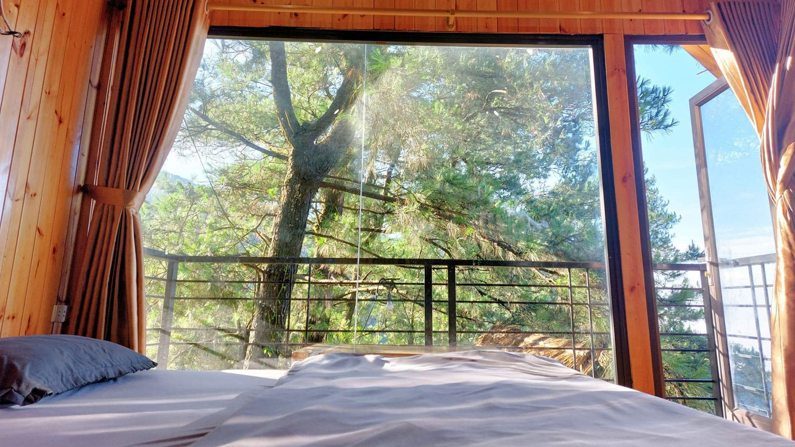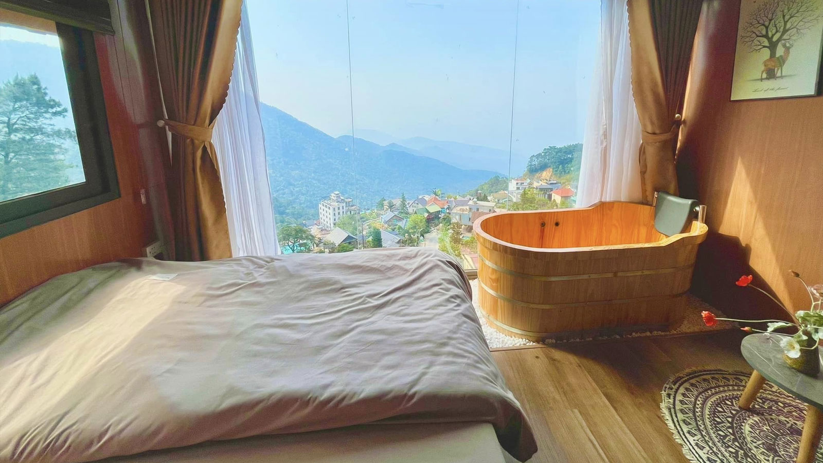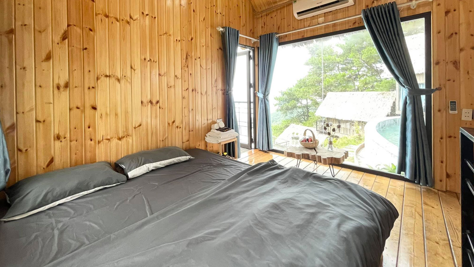 Phòng này mang lại không gian riêng tư với view núi rừng tuyệt đẹp, rất lý tưởng cho các cặp đôi. Buổi sáng, bạn có thể mở rèm cửa và ngắm nhìn cảnh mây núi lãng mạn.