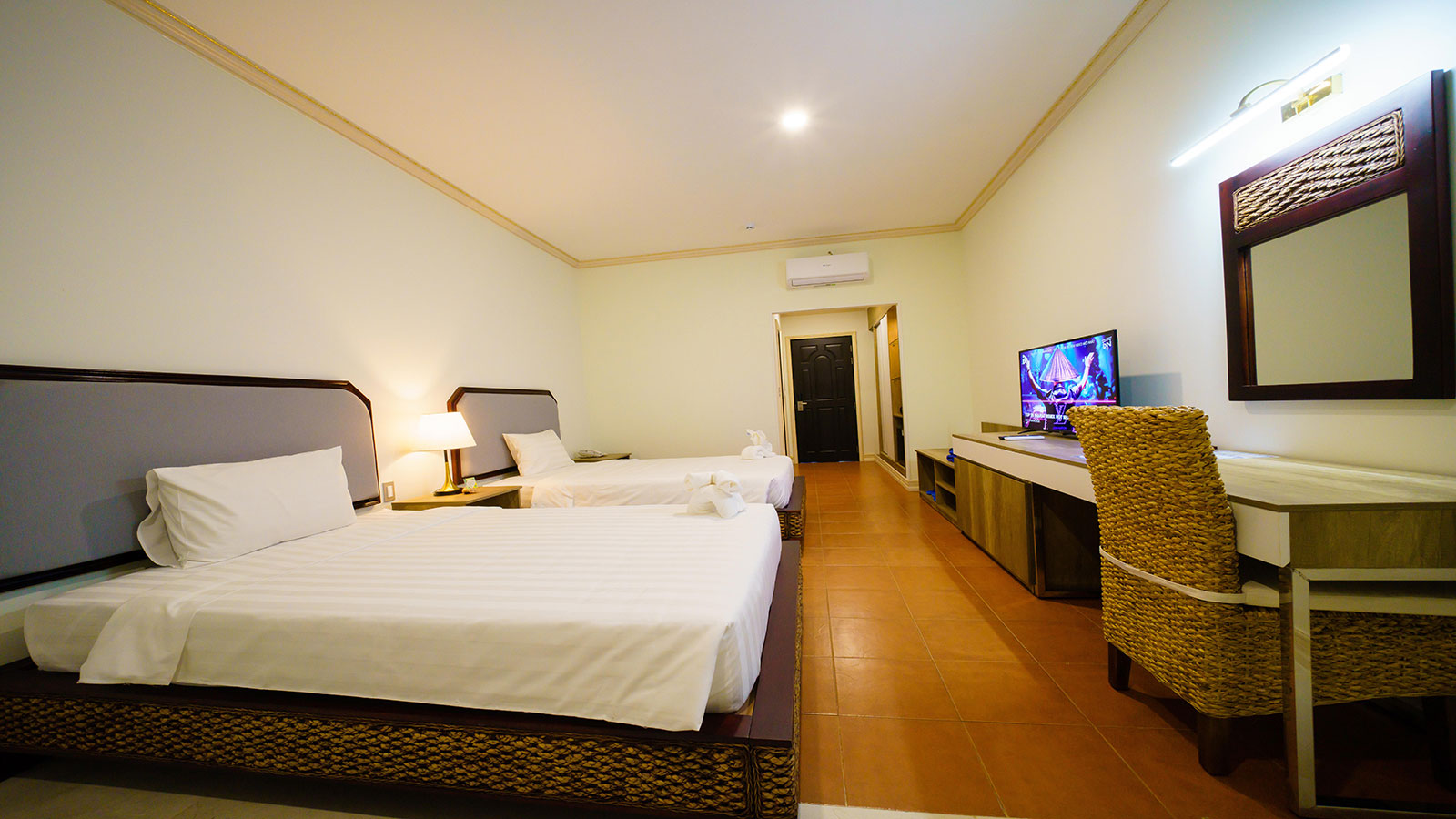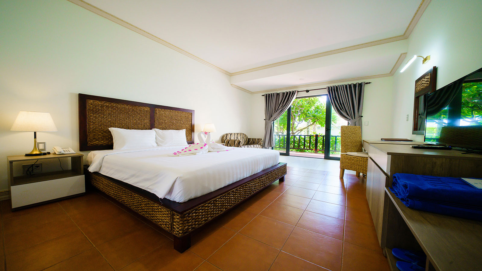 Blooming Lotus Resort Phan Thiết nổi bật với thiết kế hiện đại nhưng vẫn giữ được nét truyền thống của văn hóa Việt Nam. Mỗi phòng nghỉ tại đây được trang bị đầy đủ tiện nghi hiện đại, từ TV màn hình phẳng, minibar đến Wi-Fi miễn phí. Phòng nghỉ rộng rãi và thoải mái, với cửa sổ lớn cho phép bạn ngắm nhìn toàn cảnh biển hoặc khu vườn xanh mát của resort.