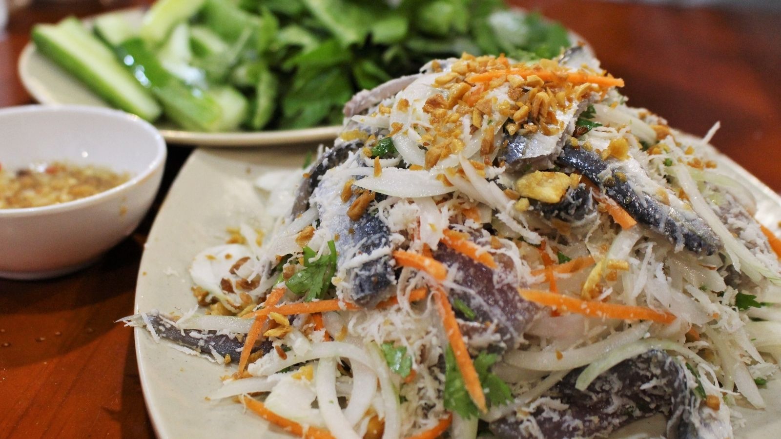 Gỏi cá trích Phú Quốc – tươi ngọt, ăn kèm rượu sim.