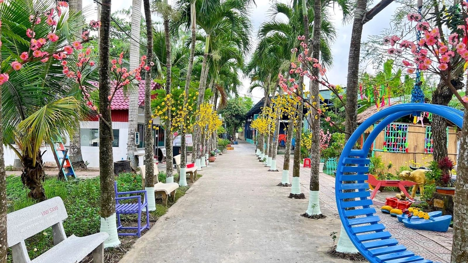 Đừng quên thưởng thức các món ngon đặc trưng: cá tai tượng chiên xù, lẩu cua đồng, bánh xèo hến, nem nướng Cái Vồn và đặc biệt là trái cây miệt vườn tươi ngon theo mùa.