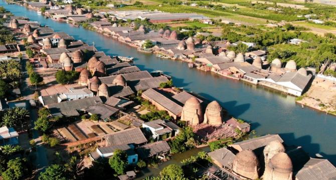 Làng gốm nổi tiếng với những lò gốm đỏ rực và quy trình sản xuất truyền thống. Du khách có thể tham gia trải nghiệm nặn gốm, tìm hiểu cách người dân tận dụng nguồn đất sét phù sa để tạo nên sản phẩm thủ công chất lượng.
