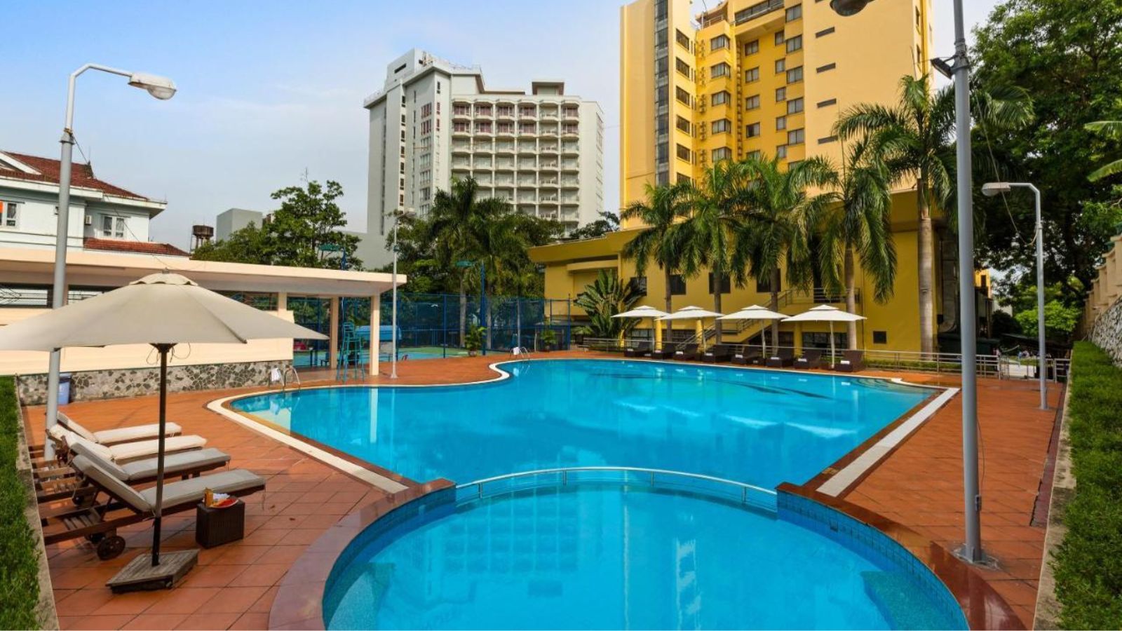 Nằm ngay tầng 4 của khách sạn Marina Hotel, du khách có thể sử dụng bể bơi của khách sạn với diện tích 90m2 dành cho cả người lớn và có khu vực riêng dành cho các bạn nhỏ đi cùng bố mẹ. Bể bơi được thiết kế sang trọng mang tới không gian thư giãn tuyệt vời cùng những góc check in cực kỳ lung linh sẽ giúp bạn sưu tầm được kha khá bức hình chất lượng đó.