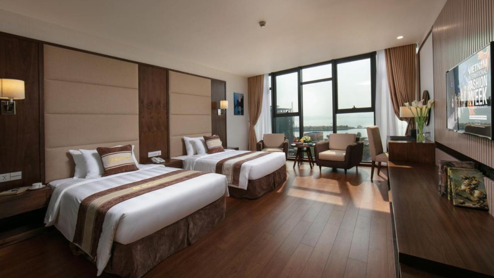 Khách sạn Marina Hotel Hạ Long sở hữu gam màu trầm chủ đạo nhằm tạo nên cảm giác ấm cúng và thư giãn trong chính ngôi nhà thân yêu. Từng hạng phòng cũng đều mang những nét thiết kế độc đáo riêng vô cùng ấn tượng. Tận dụng tối đa ánh sáng tự nhiên qua những khung cửa kính hiện đại cùng đồ nội thất tiện nghi và sang chảnh khiến cho tổng thể vô cùng hài hòa và đẹp mắt. Bất cứ vị trí nào tại Marina Hotel cũng đều là nơi sống ảo check in vô cùng hấp dẫn cho các chị em đó.