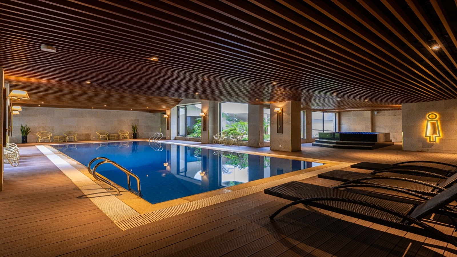 Không gian bể bơi rộng với bể bơi 4 mùa và ghế dài nằm kế bên phòng tập gym, nơi bạn có thể thư giãn sau những bài tập luyện. Ngoài ra bạn cũng có thể sử dụng bể Jacuzzi hiện đại với hệ thống phun nước mạnh massage giúp cải thiện sức khỏe.