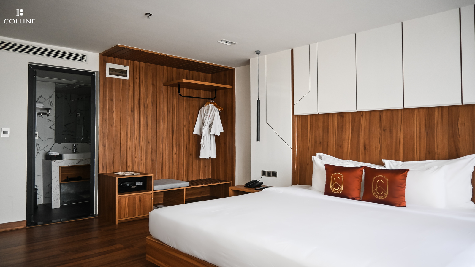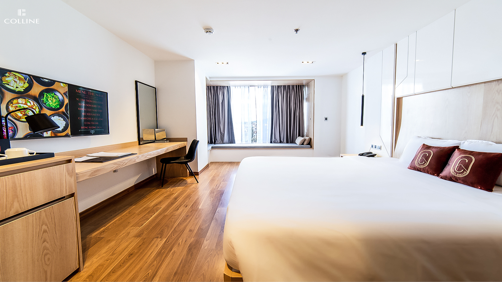 Đây là hạng phòng mang dấu ấn riêng của Hotel Colline Đà Lạt. Với khung cửa sổ lớn hướng ra hồ Xuân Hương, một địa điểm tham quan mang tính biểu tượng của Đà Lạt, khung trời khoáng đạt cùng bầu không khí trong lành sẽ là điểm cộng tuyệt đối cho hạng phòng này.