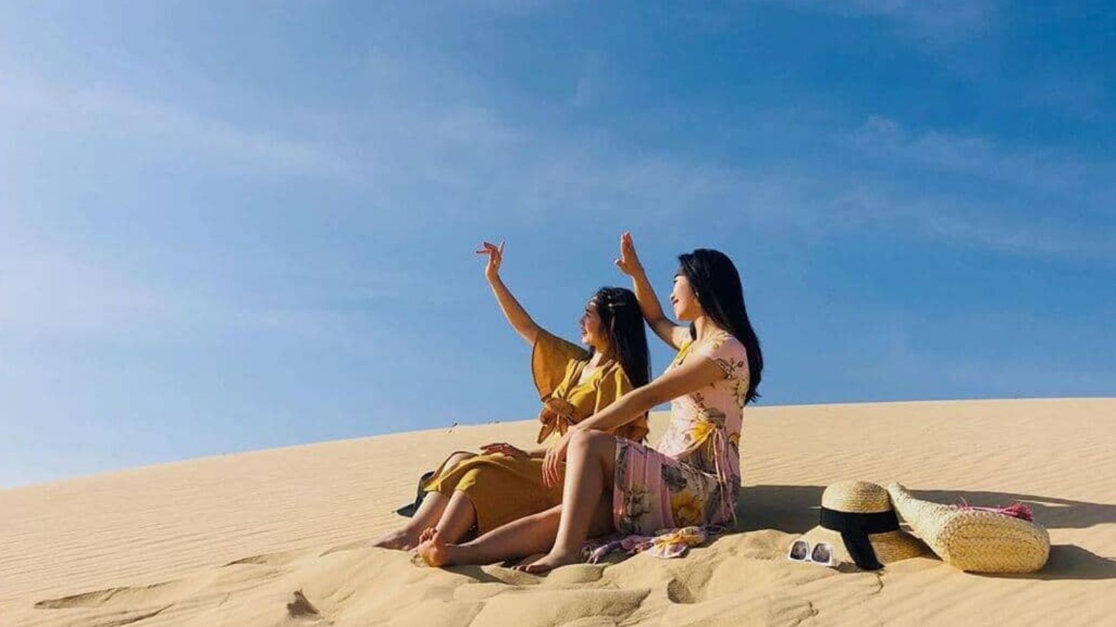 Vào buổi hoàng hôn, đồi cát Phương Mai còn mang đến cảnh quan đẹp mơ màng với những tia nắng màu cam đổ lên cát. Điều này đã vẽ nên một không gian lãng mạn và thơ mộng, rất thích hợp để bạn lưu lại những bức ảnh đẹp độc đáo.