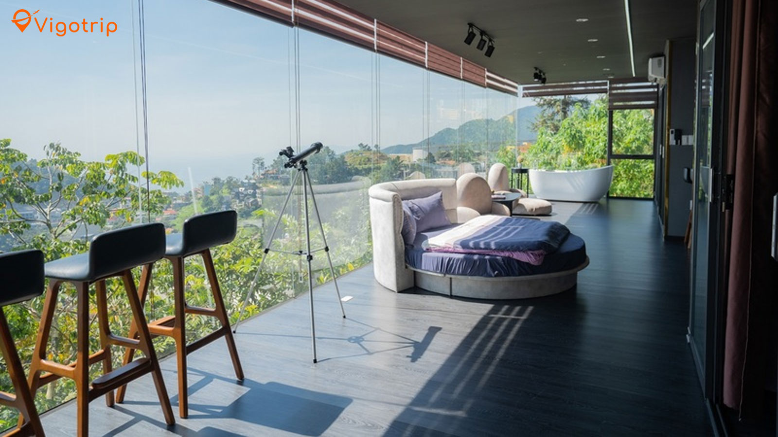 90s Homestay mang đến 3 căn hộ Nhởn Nhơ Panorama mới toanh với thiết kế hoàn toàn làm từ kính, mang đến trải nghiệm độc đáo với view đẹp 360 độ ra toàn cảnh núi rừng Tam Đảo.