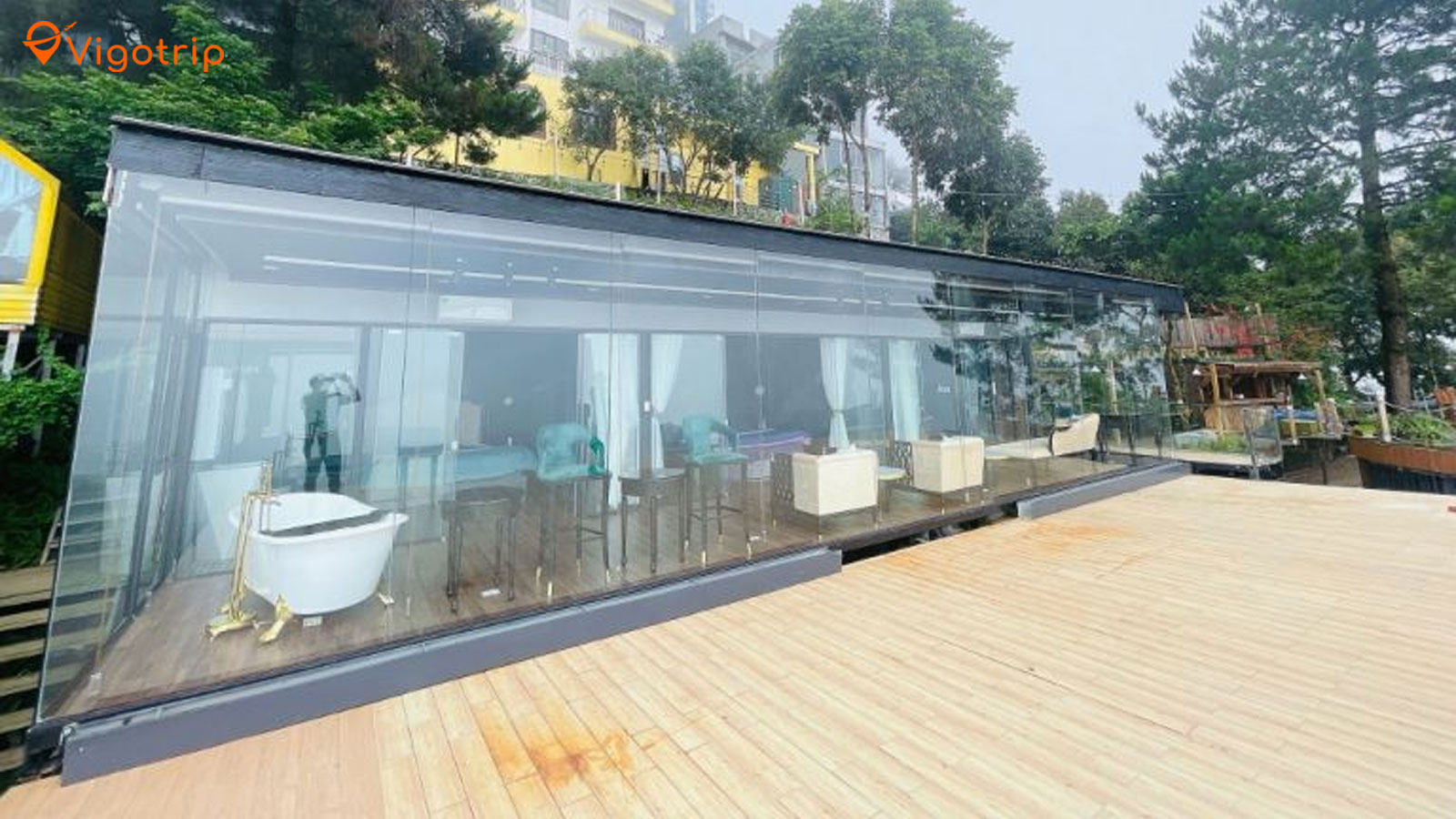 Mơ Màng House có kiến trúc độc đáo dạng vòng tròn, được làm bằng kính chịu lực. Căn villa này gồm 2 phòng ngủ với giường Queen size 1,8 x 2m, phòng khách, gian bếp và phòng tắm hiện đại. Giá phòng đã bao gồm trang phục Boho và bữa sáng.