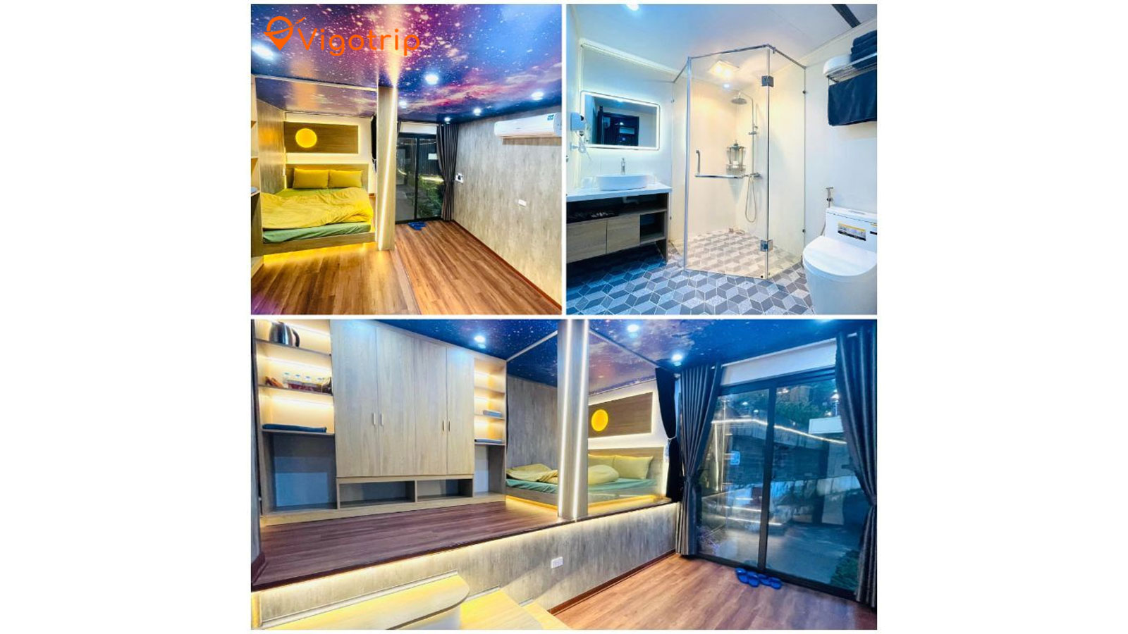 Hoàng Hôn Galaxy là một hạng phòng mới với concept độc đáo được lấy cảm hứng từ dải ngân hà. Phòng có sức chứa từ 4 – 6 người lớn với 2 giường đôi cỡ lớn được ngăn cách bằng rèm cửa, tạo nên không gian riêng tư.