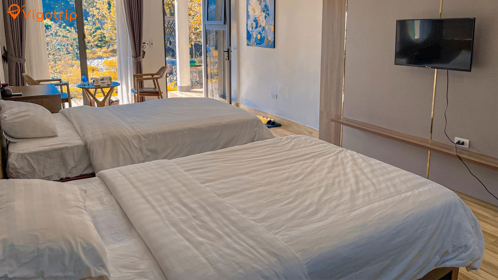 - Tiện nghi: Hai giường đôi, phòng tắm riêng, khu vực tiếp khách, điều hòa.