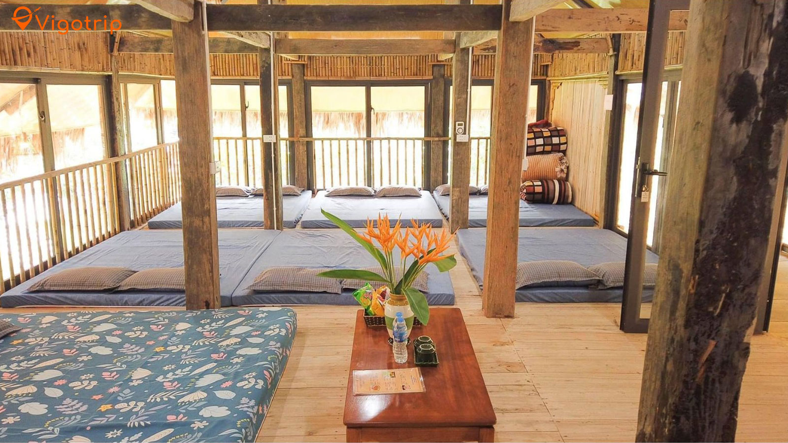 - Đặc điểm nổi bật: Nhà Sàn mang đến trải nghiệm gần gũi với văn hóa dân tộc thiểu số, thích hợp cho các nhóm lớn hoặc gia đình đông người. Không gian sinh hoạt rộng rãi và thoải mái.