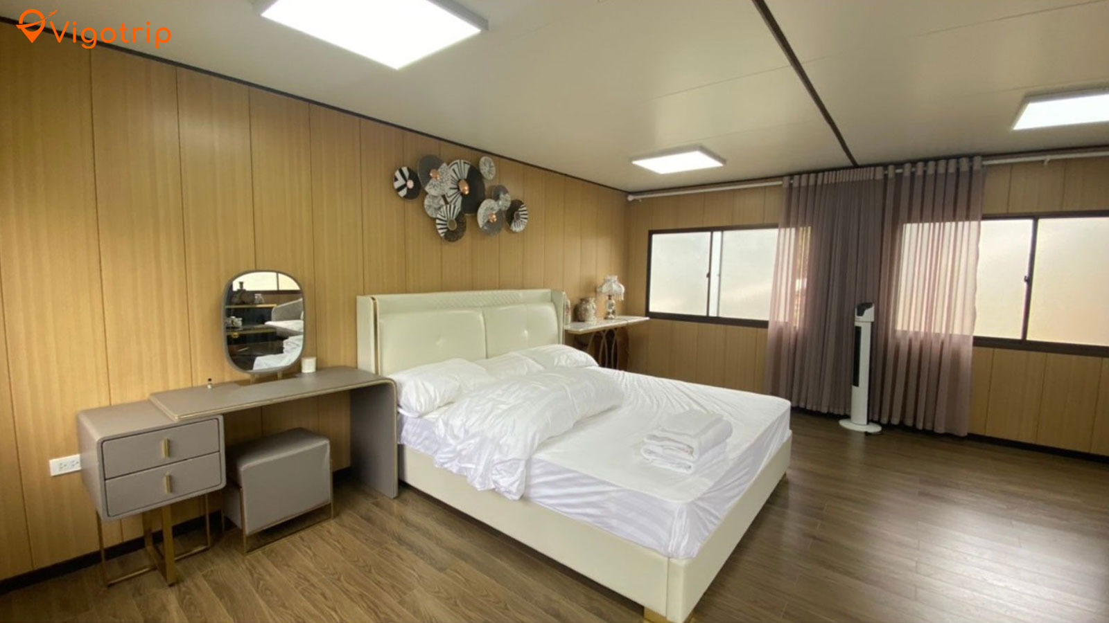 - Đặc điểm nổi bật: Phòng rộng rãi và thoải mái, phù hợp cho các gia đình hoặc nhóm bạn. Không gian sinh hoạt chung tạo điều kiện thuận lợi cho việc quây quần bên nhau.