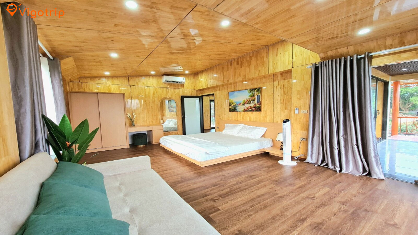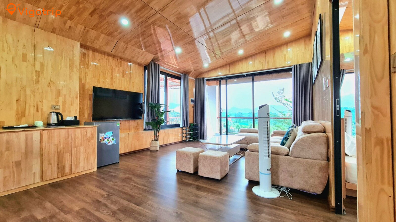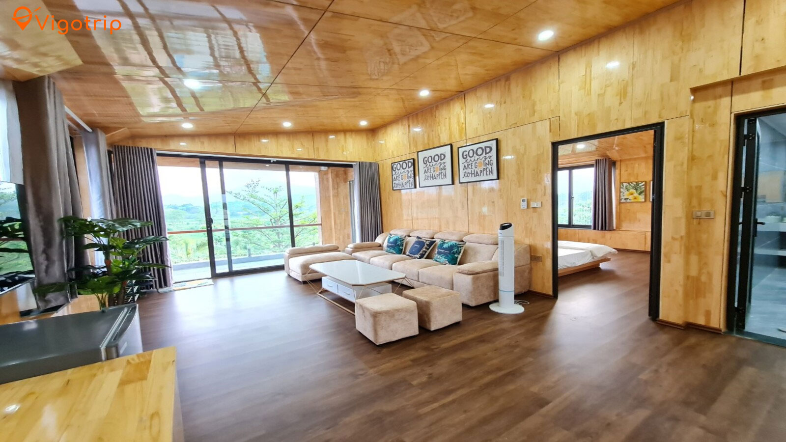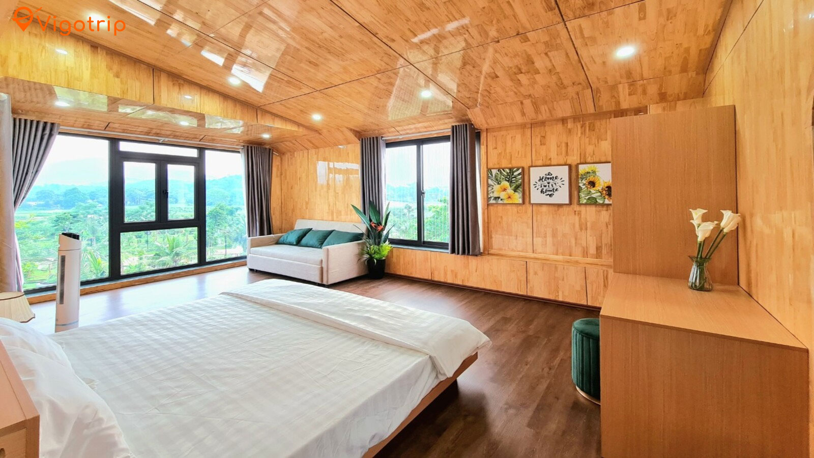 Autumn House mang đến không gian ấm cúng với nội thất gỗ tự nhiên. Căn phòng này thích hợp cho các cặp đôi hoặc gia đình nhỏ, tạo cảm giác thân mật và gần gũi. Bạn có thể thư giãn trên ban công, ngắm nhìn cảnh sắc núi rừng.