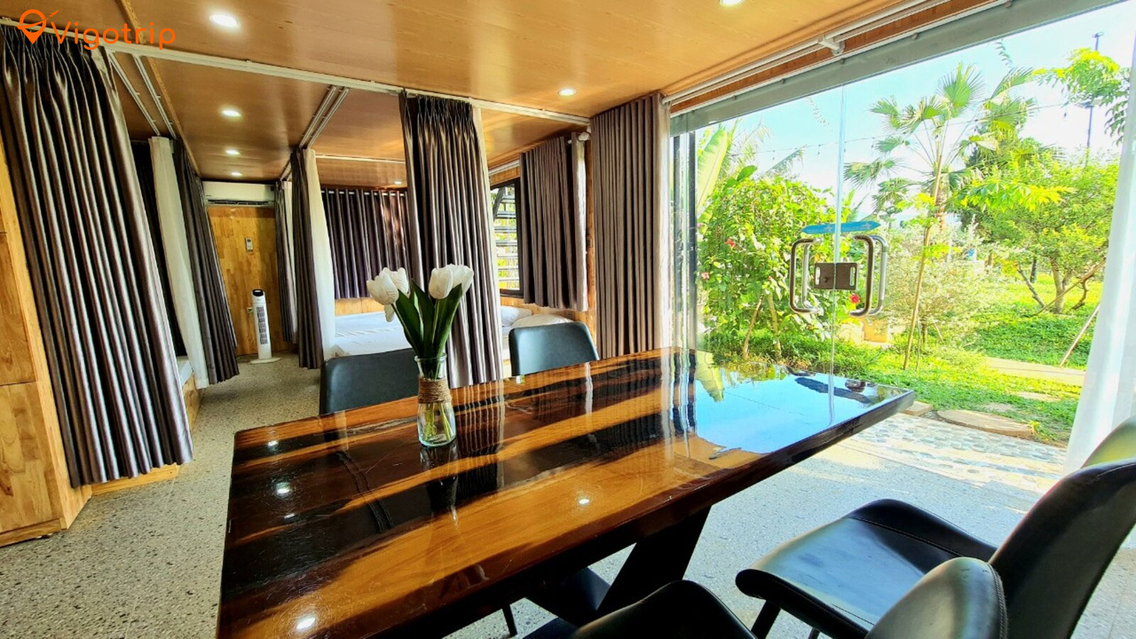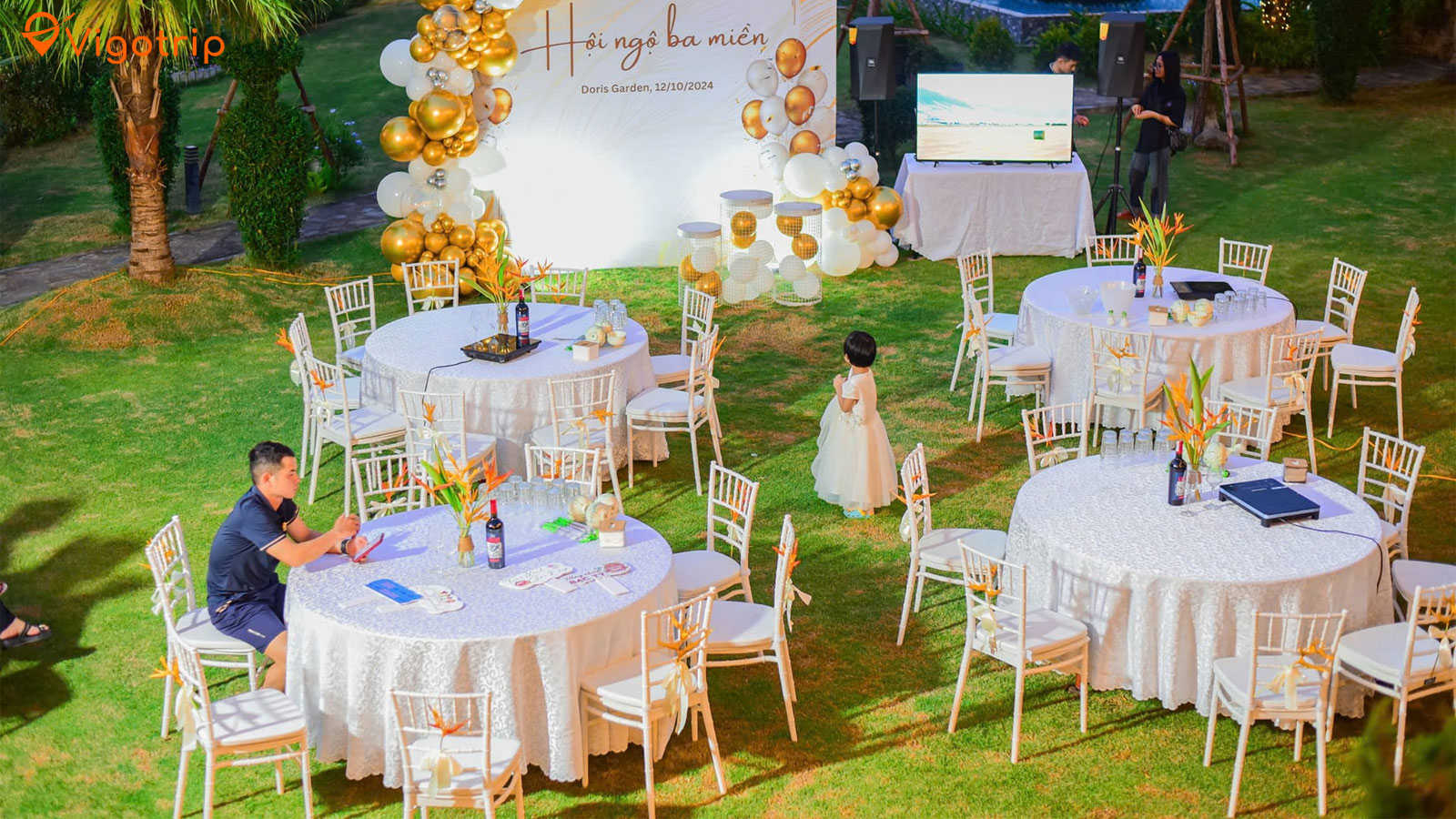 Doris Garden không chỉ có không gian thoáng đãng mà còn được trang bị đầy đủ tiện nghi như wifi miễn phí, bếp chung, khu vực BBQ, và sân vườn rộng rãi. Đây là điểm cộng lớn cho những ai muốn tổ chức tiệc nướng hoặc picnic cùng gia đình và bạn bè.