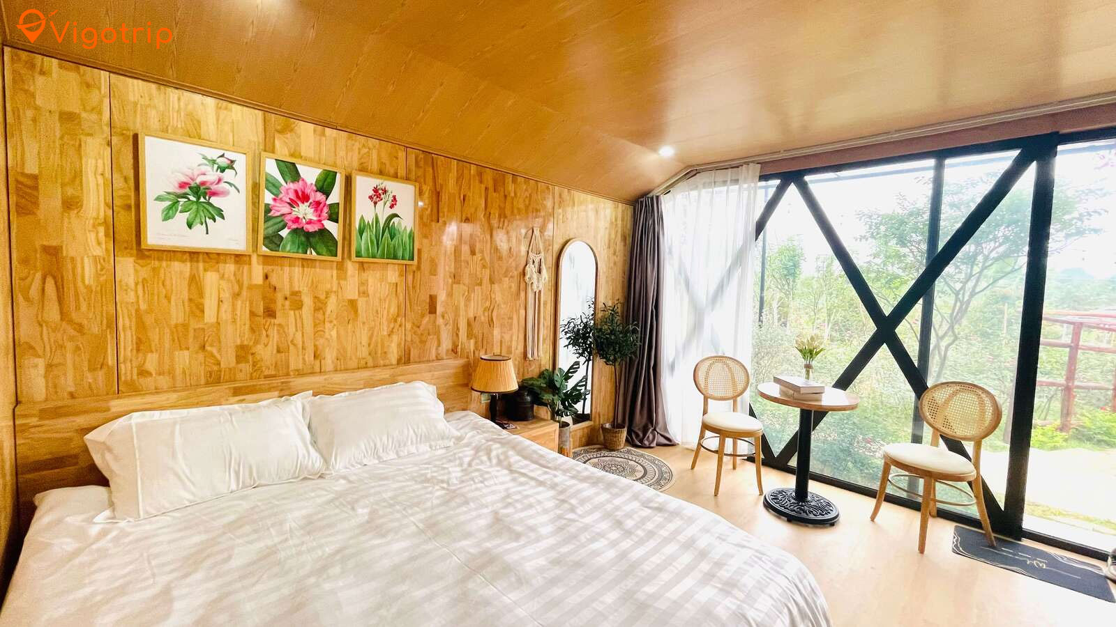 Homestay Ba Vì Doris Garden gây ấn tượng với thiết kế gần gũi với thiên nhiên. Những căn phòng được trang trí tinh tế, cùng với view đẹp nhìn ra núi rừng, giúp bạn cảm nhận sự bình yên tuyệt đối. Mỗi sáng, bạn sẽ thức dậy trong tiếng chim hót và hương thơm của cây cỏ của Homestay Ba Vì view đẹp này.